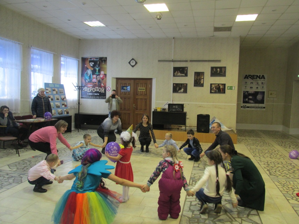 12 марта в кинотеатре «Новый век» для детей с родителями была проведена игровая программа «Воздушный шарик». Ребята вместе с детьми участвовали в конкурсах, играх. А также танцевали и загадывали желание с Радугой Дэш - героем из мультфильма.