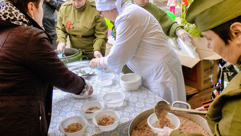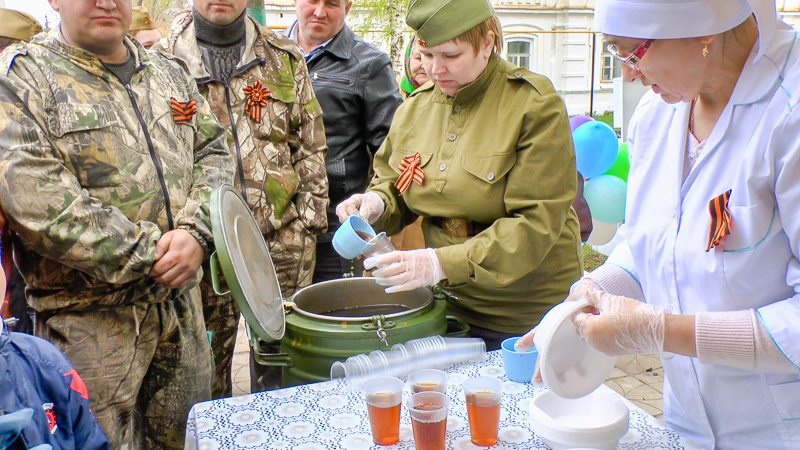 Для всех желающих была организована полевая кухня, где угощали чаем и настоящей солдатской кашей.