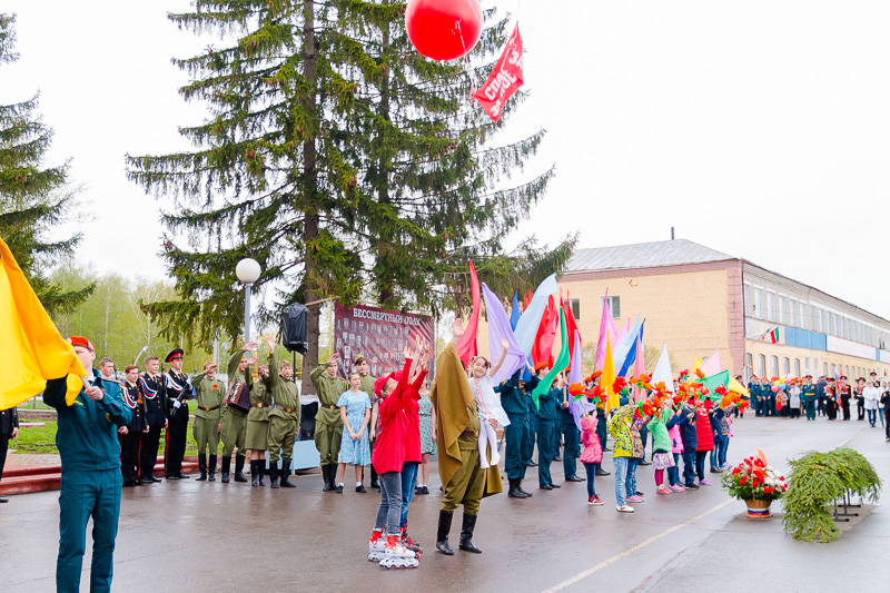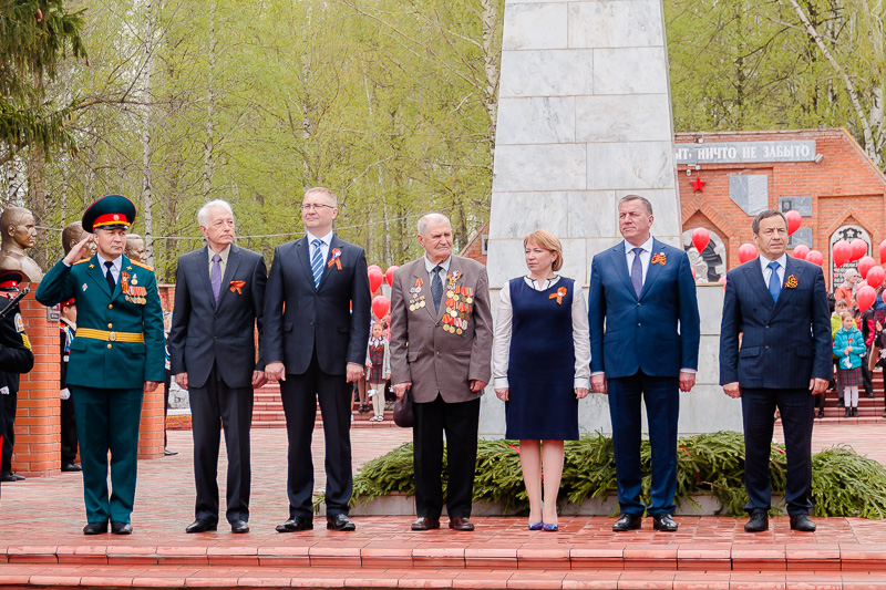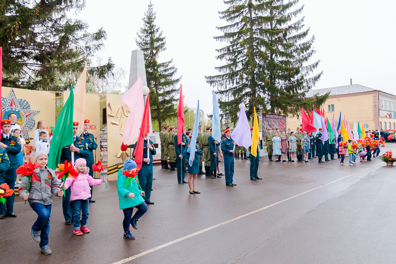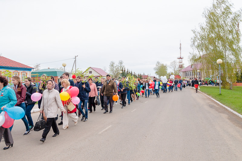 Руководители района и города, работники организаций, предприятий, учреждений, учащиеся единой командой прошли до места проведения праздника – Монумента Славы.
