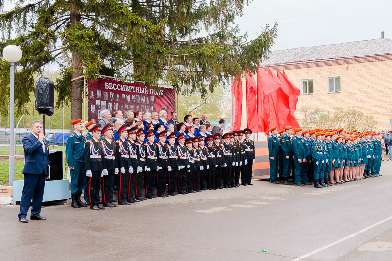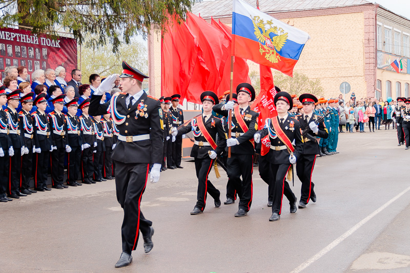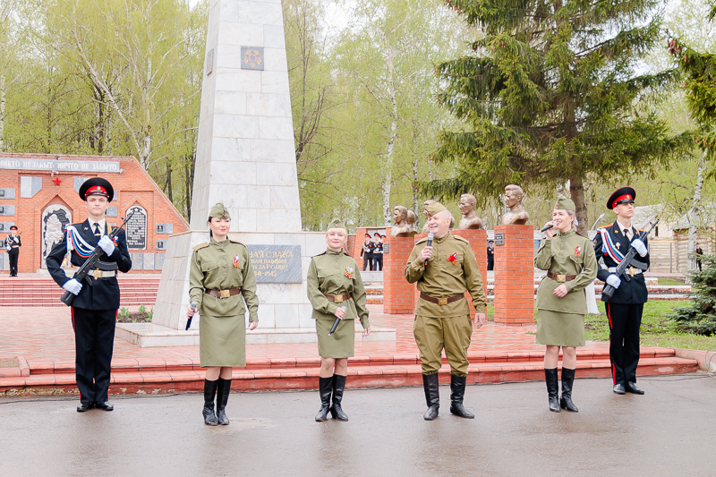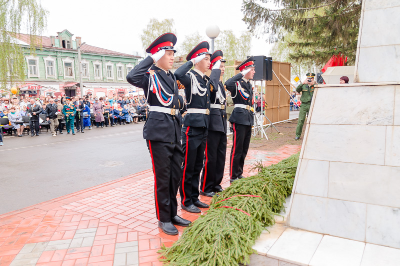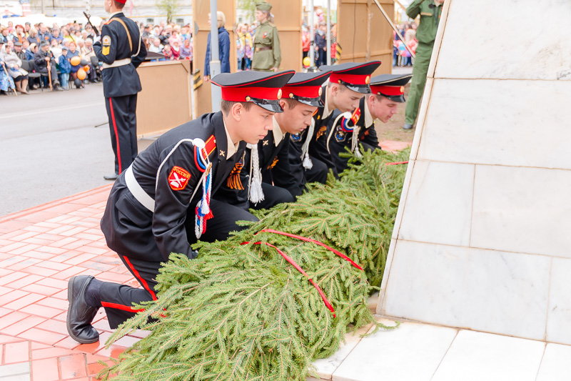 Гирлянды и цветы были возложены к Вечному огню и к памятнику труженикам тыла. В завершение митинга прошел торжественный марш кадет, как символ преемственности боевых, героических традиций фронтовиков.