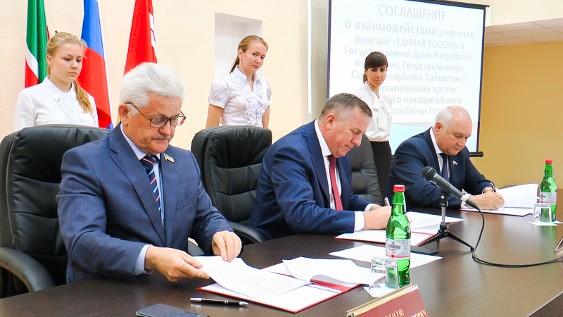 1 июня в большом зале администрации состоялось подписание Соглашения о взаимодействии депутатов фракций «Единая Россия» в Госдуме РФ, в Госсовете РТ и в Совете Тетюшского муниципального района по вопросу берегоукрепления прибрежной зоны Куйбышевского водохранилища в г.Тетюши Тетюшского муниципального района Республики Татарстан.