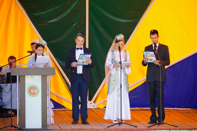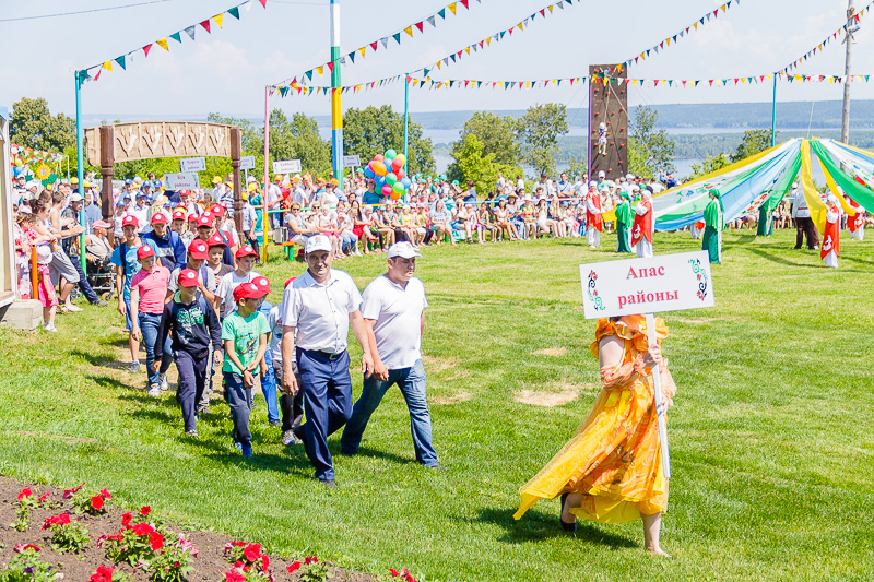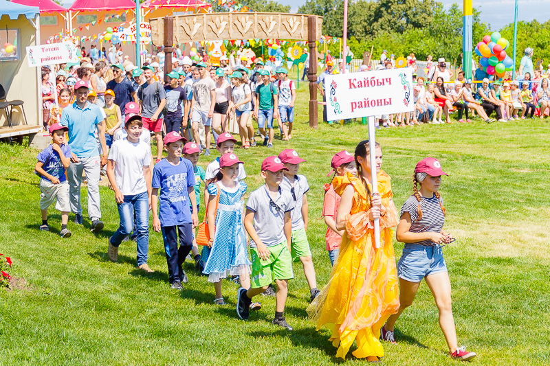 После торжественного шествия гостей из соседних районов - детей из Апастовского, Буинского, Кайбицкого, Дрожжановского, Камско-Устьинского, а также ребят из Тетюшского района, следовал завораживающий пролог с участием творческих коллективов района. Изобилие национальных костюмов, красота национального танца не оставили равнодушным никого из зрителей.