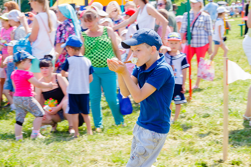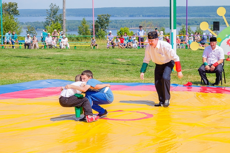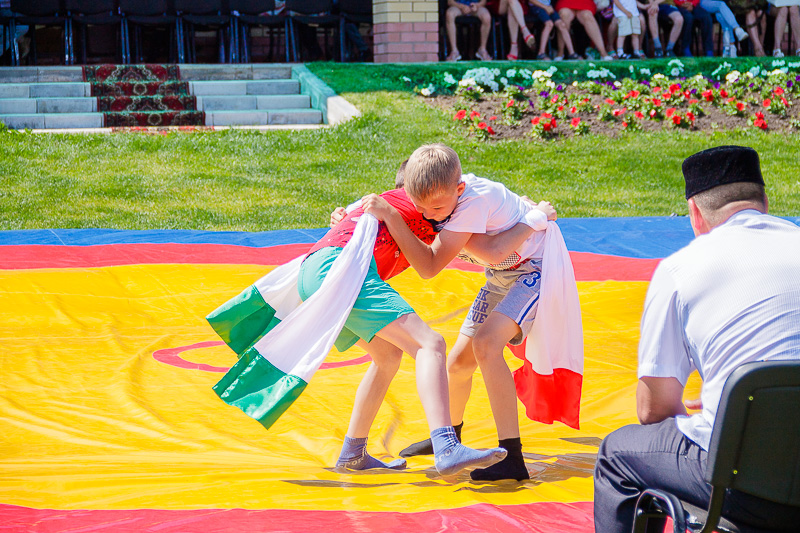 Дети с удовольствием принимали участие в различных состязаниях: бегали в мешках и с коромыслами, били горшки, ходили по бревну, но все-же самым зрелищным событием праздничного дня стали традиционная борьба кореш, в которой за солидные призы поборолись юные представители шести районов республики, различные спортивные состязания - перетягивание каната, гиревой спорт, армрестлинг и др. Помимо всего перечисленного, каждый желающий мог принять участие во всевозможных мастер-классах, таких как лепка фигурок и горшков из глины, изготовление национальных кукол и сувениров.