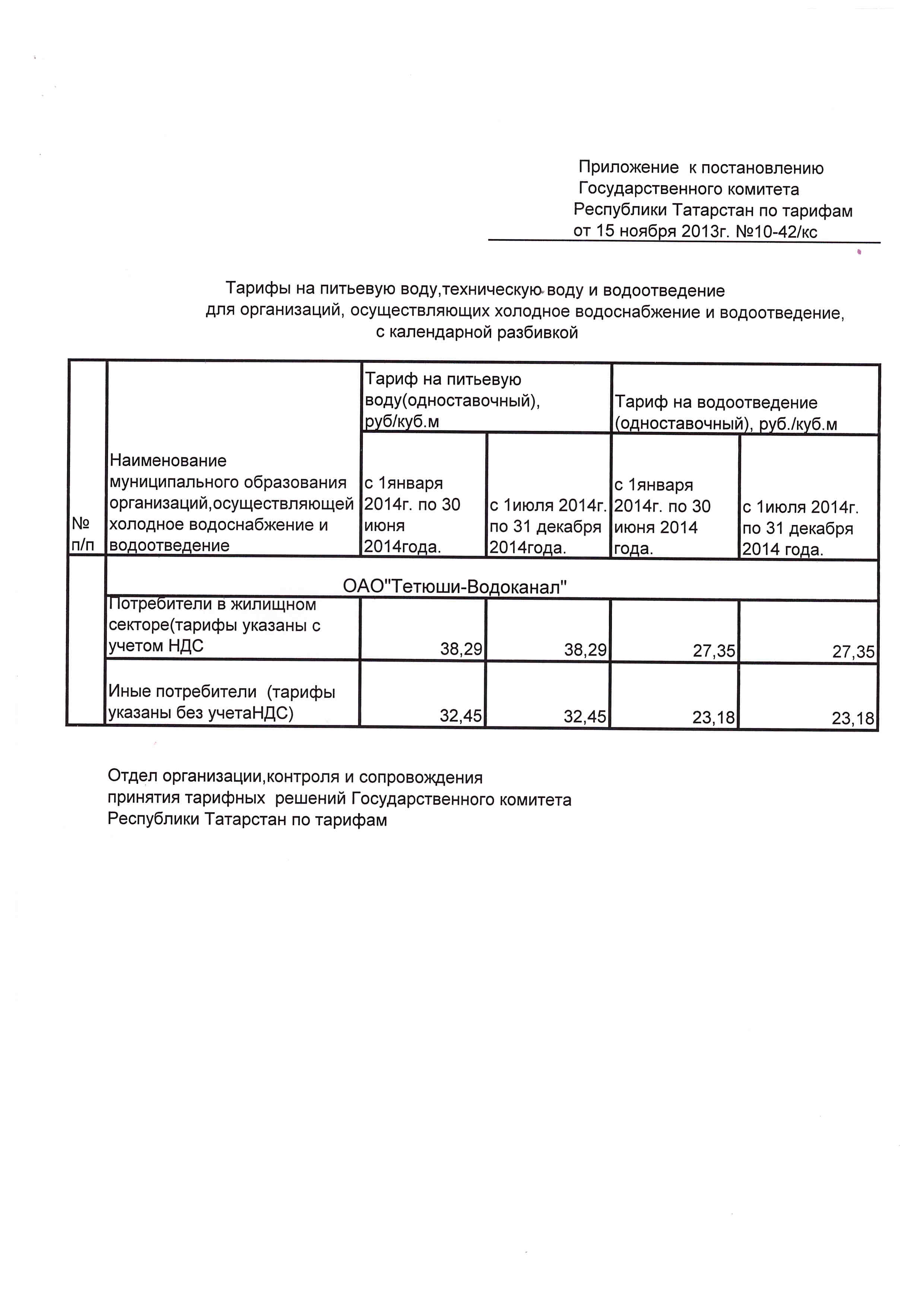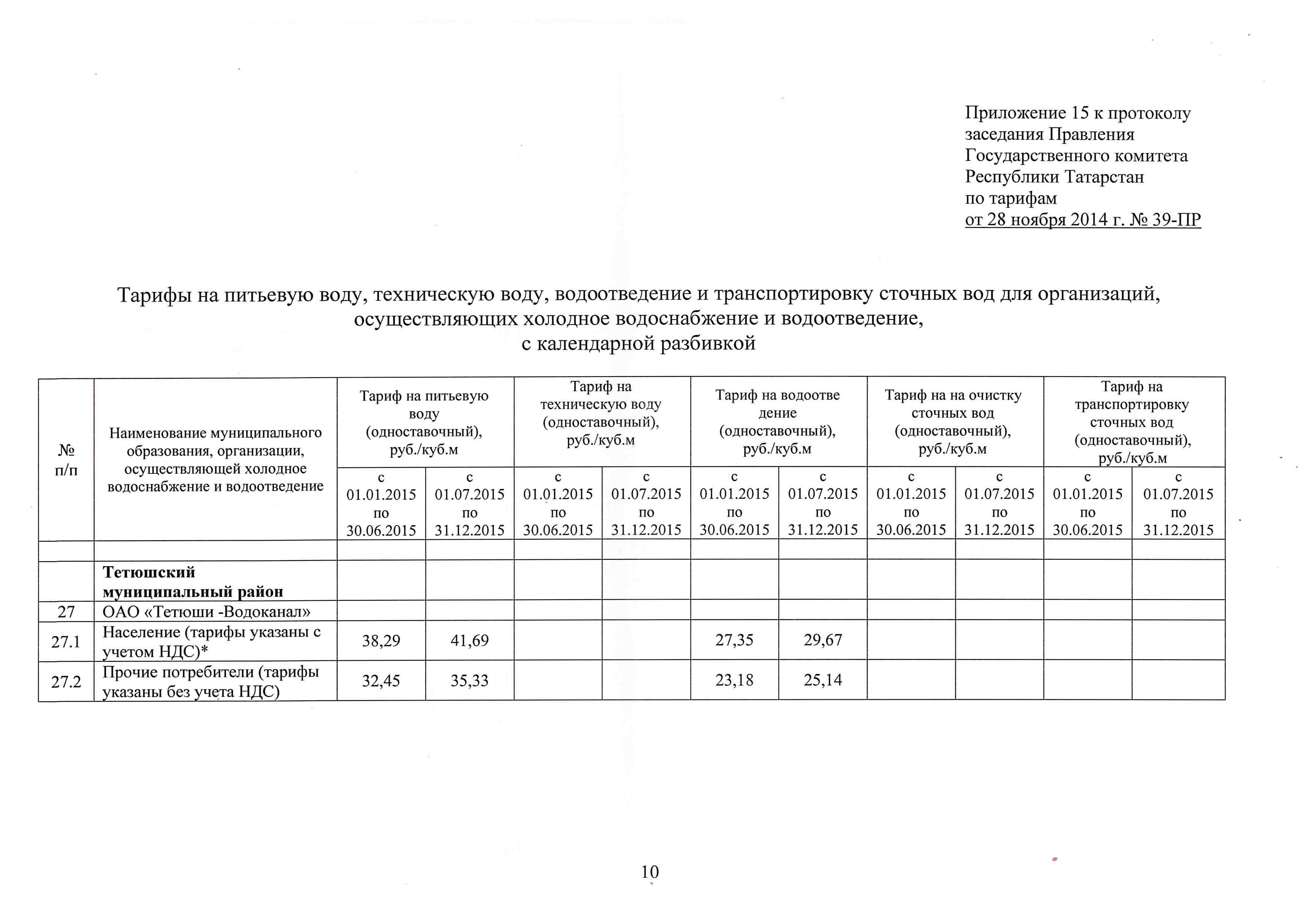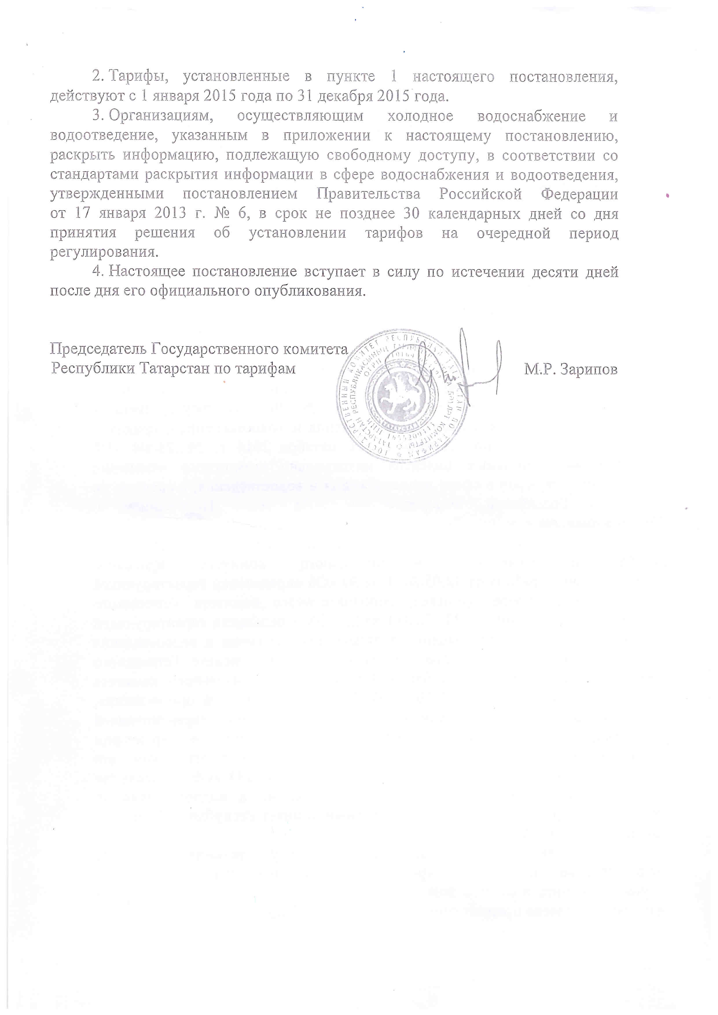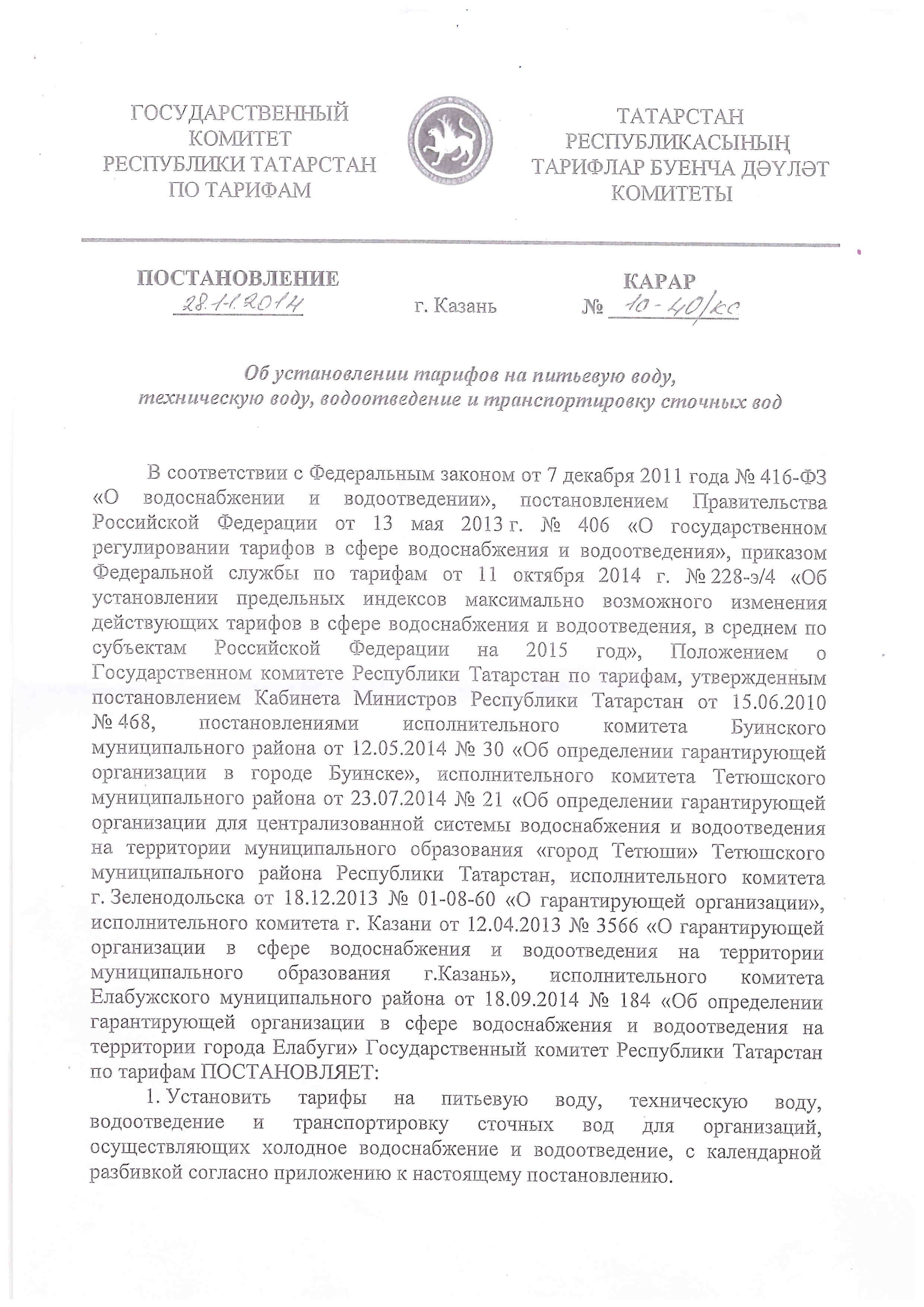 Постановление ГК РТ по тарифам от 28.11.14 №10-40/кс "Об установлении тарифов на питьевую воду..."
