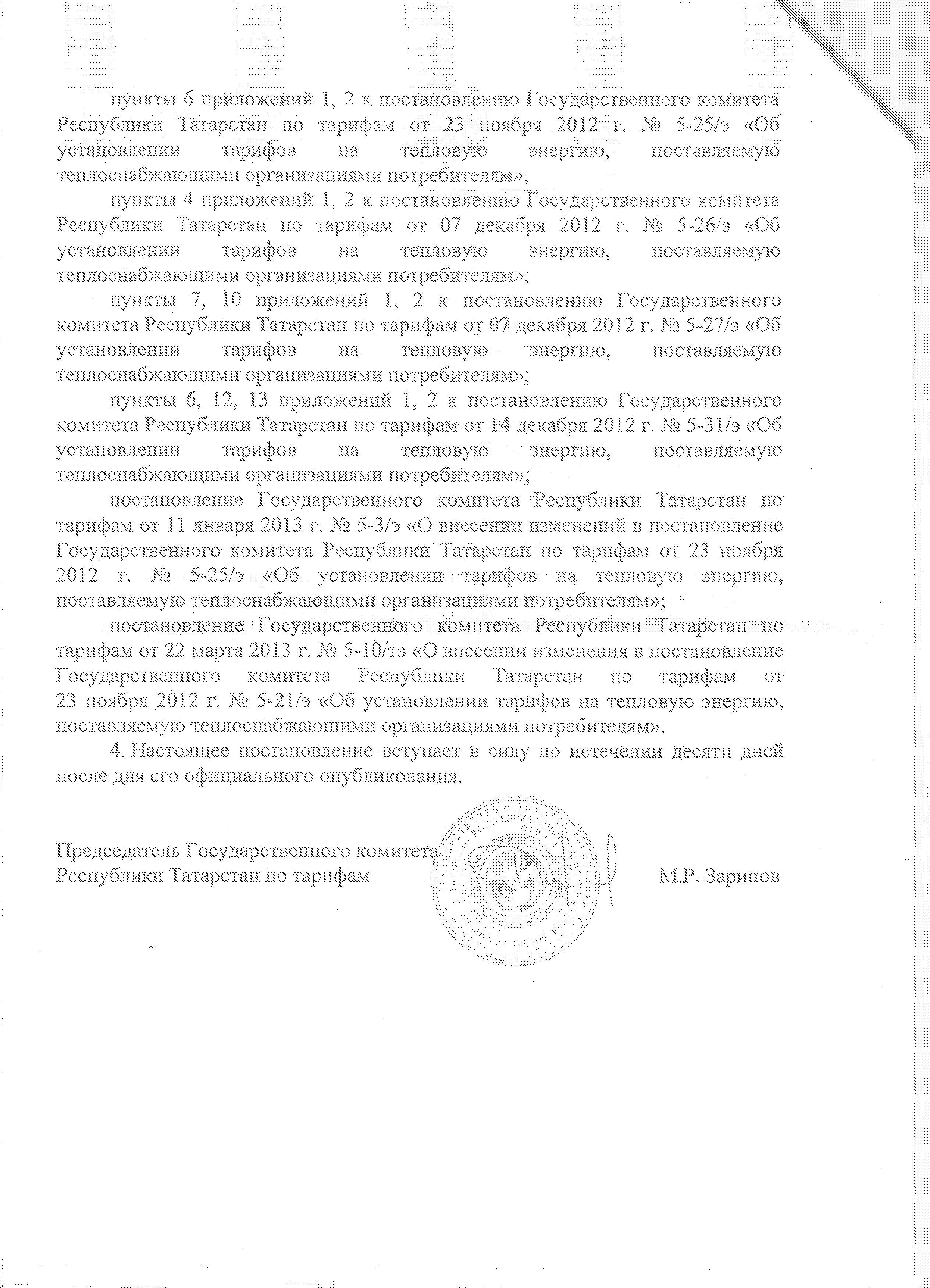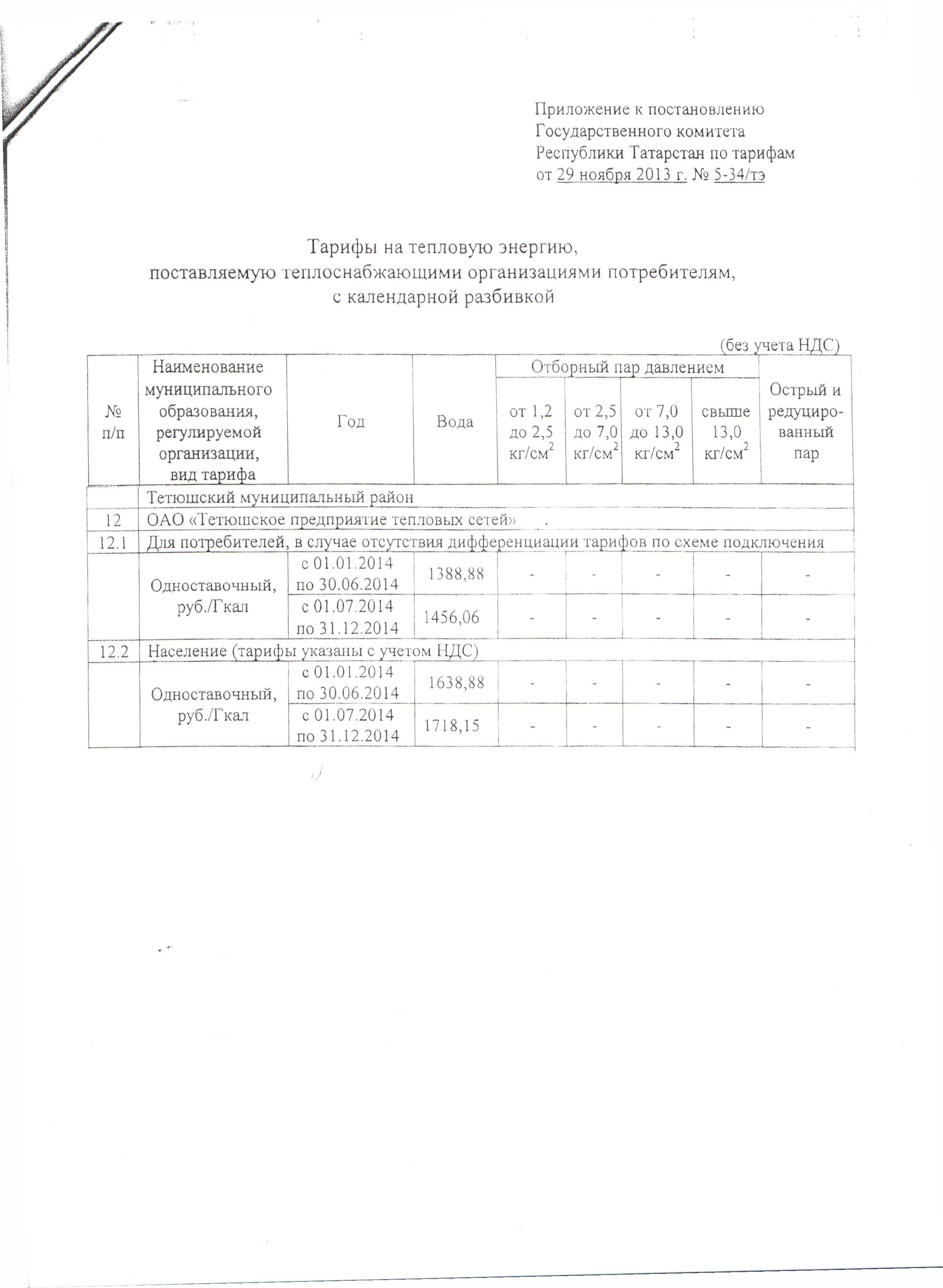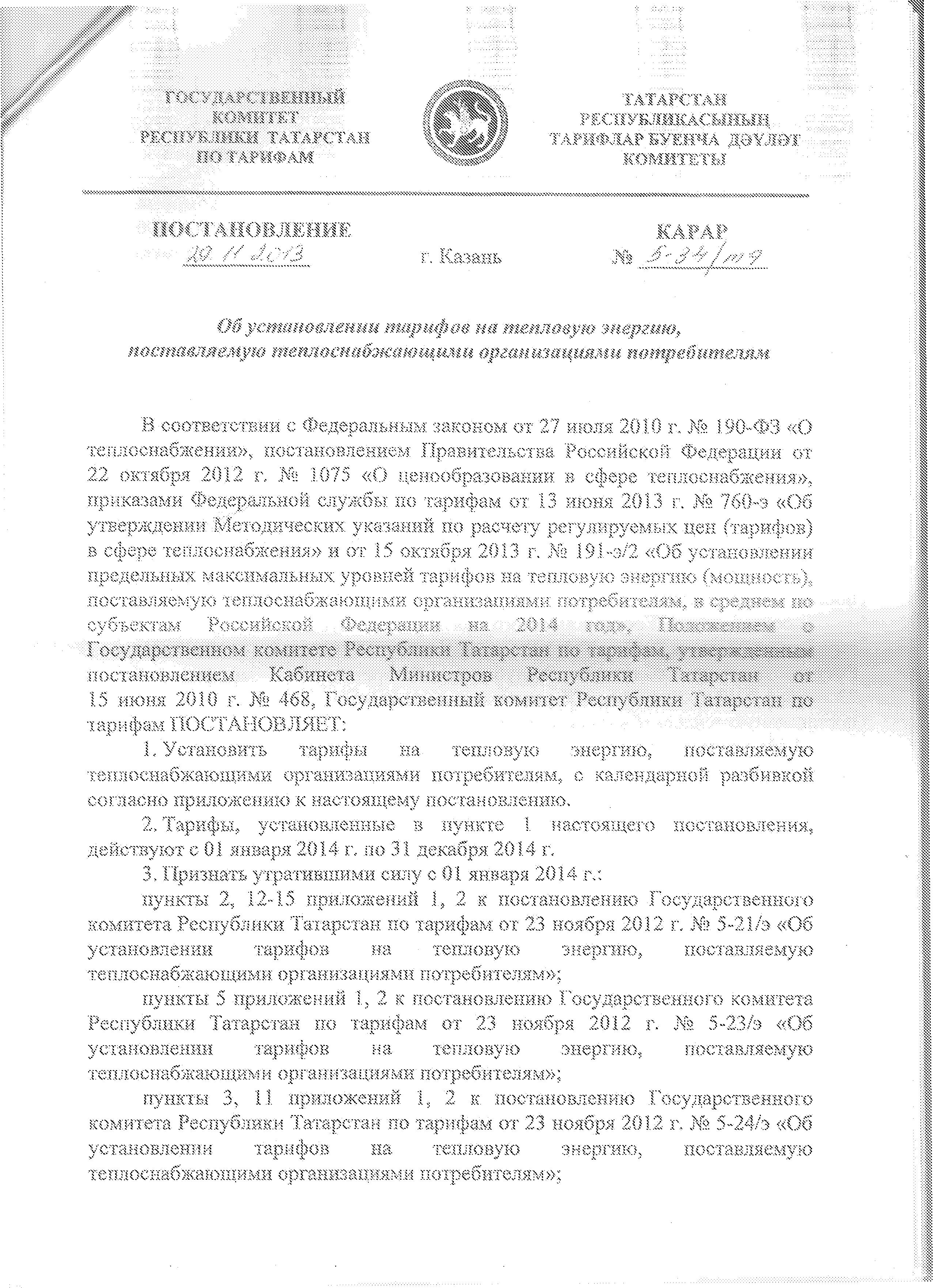 Об установлении тарифов на тепловую энергию, поставляемую теплоснабжающими организациями потребителям с 01.01.2014