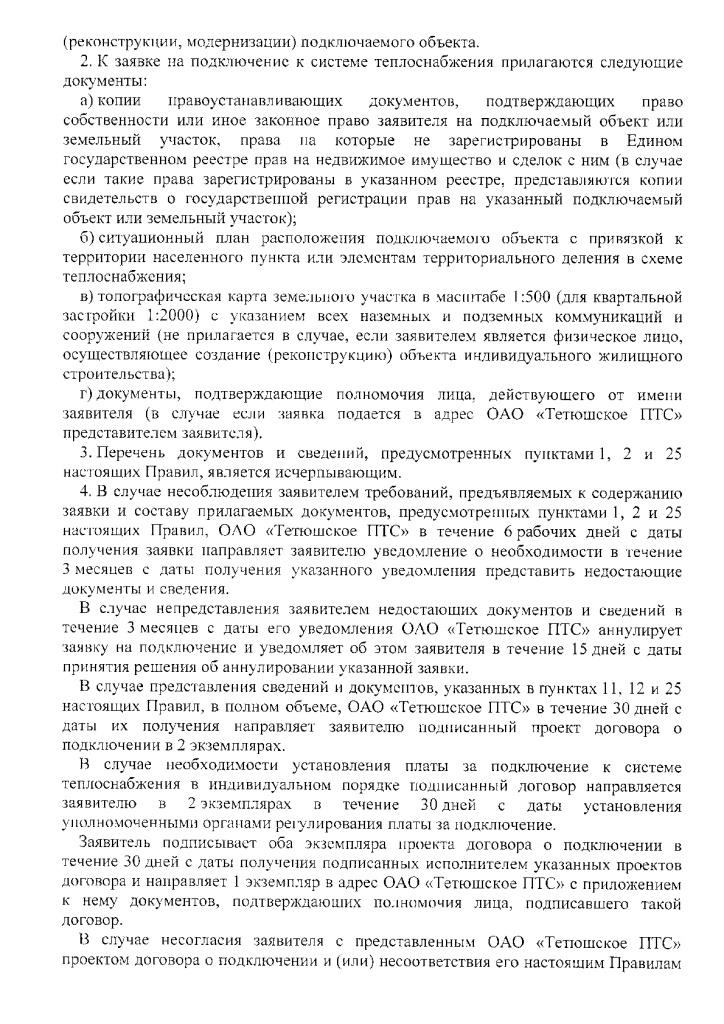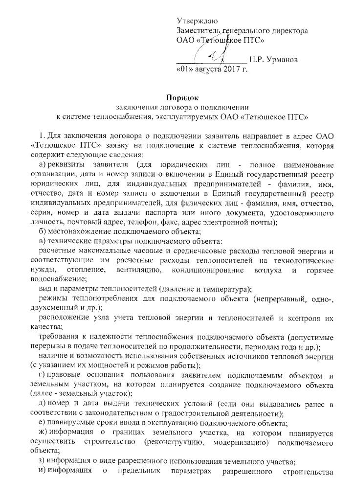 Порядок заключения договора о подключении к системе теплоснабжения ОАО "Тетюшское ПТС"