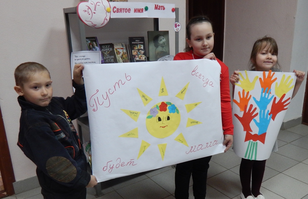 Ведущий библиотекарь Большетурминской поселенческой библиотеки Гафиятуллина Лилия подготовила и провела беседу-посвящение «Пусть всегда будет мама!». В ходе беседы ребята услышали рассказ об истории праздника, на примерах книг узнали как дорог образ матери в жизни каждого человека. Ну и, конечно, во время встречи ребята наперебой рассказывали о своих любимых мамах. Говорили о том, что маму нужно беречь, слушаться и помогать. Все ребята пообещали быть примерными и послушными для своих МАМ.