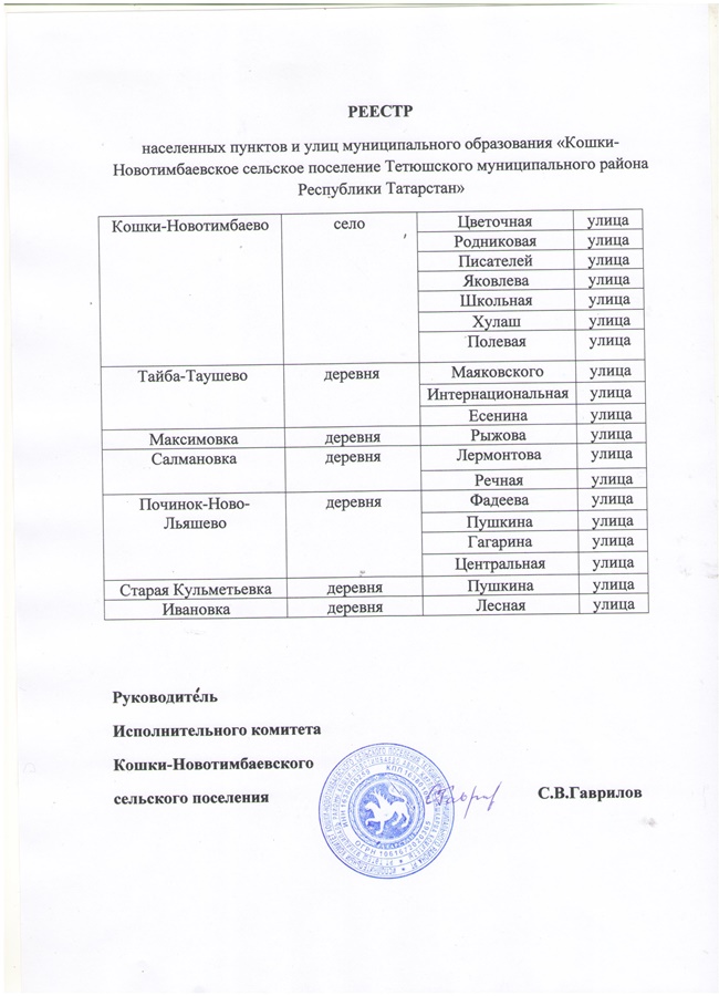 Перечень наименований улиц на территории поселений Тетюшского муниципального района