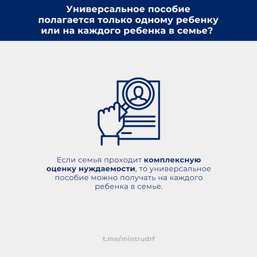 Универсальное пособие назначается с применением комплексной оценки нуждаемости, как сейчас уже назначаются выплаты на детей от 3 до 8 лет и от 8 до 17 лет.