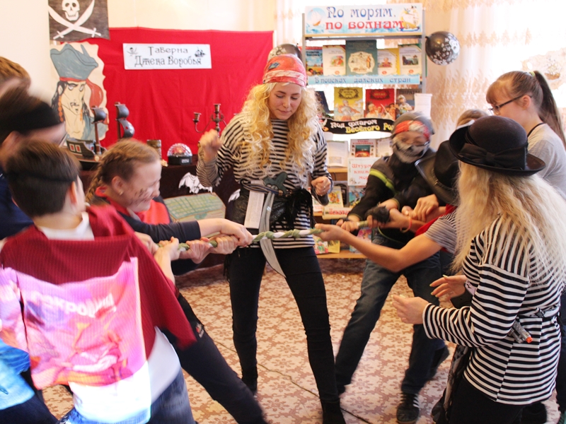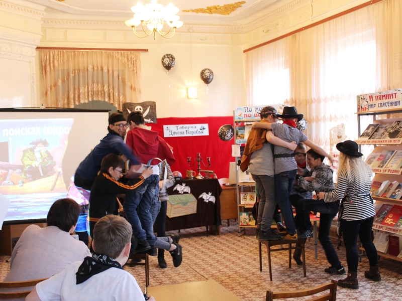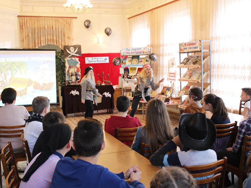Тәтеш шәһәренең Балалар китапханәсендә “Библиосумерки-2018” Бөтенроссия акциясе кысаларында “Маҗаралар эзләгәндә” дип исемләнгән квест-уен узды. Уенның тематикасы Р.Стивенсынның “Хәзинәләр утравы” романы белән бәйләнгән иде. Килгән кунакларны ике пират үзләренең кораблары бортында каршы алдылар һәм үзләре белән маҗаралар иленә алып кереп киттеләр. Уен барышында алар китапханәнең төрле почмакларында яшерелгән хәзинәләрне эзләделәр һәм шоколад тәңкәләр тутырылган тартманы таптылар һәм аерым сүзләрдән “Китап – ул кешелек дөньясының бөек хәзинәсе, белем чыганагы” дигән лозунг төзеделәр. Чарага атаклы сәяхәтчеләр, пиратлар һәм диңгезчеләрнең маҗаралары турындагы китаплардан торган китап күргәзмәсе дә оештырылган иде.