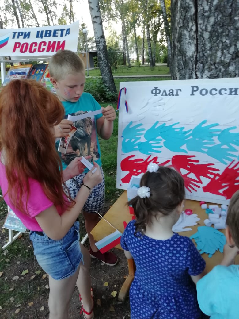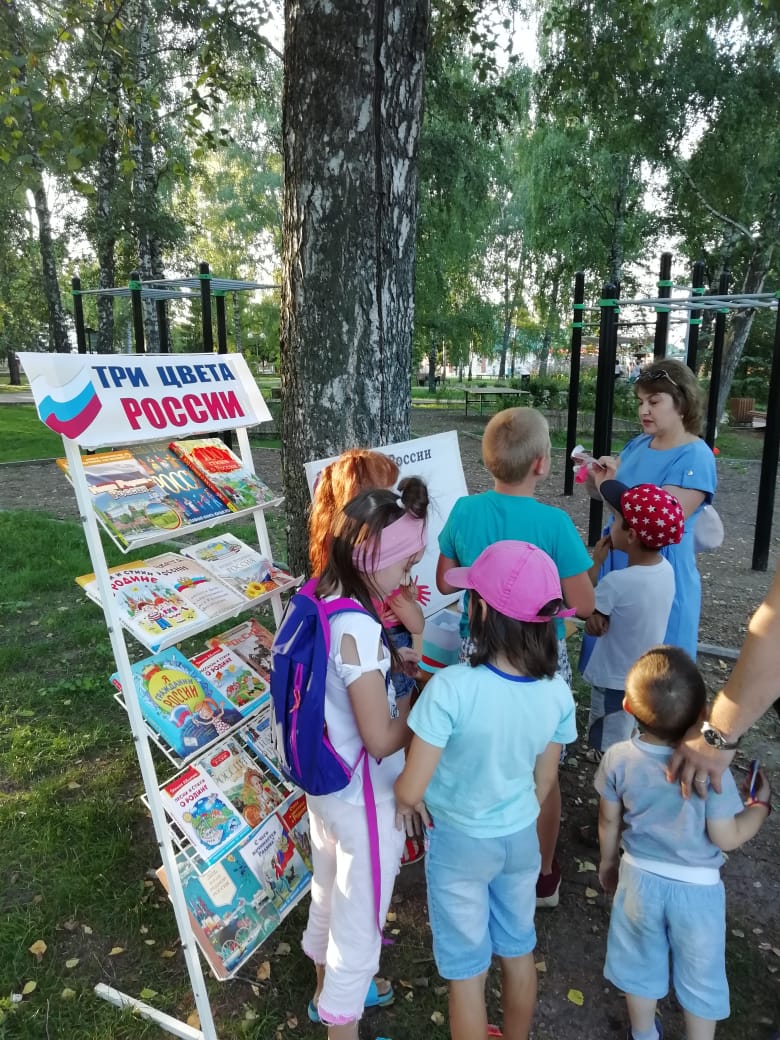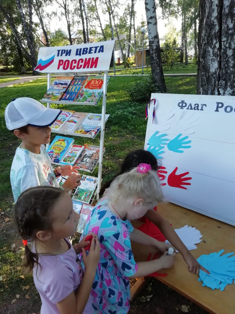 22 август көнне Үзәк паркта Россия Федерациясе Дәүләт флагы көнен бәйрәм итү кысаларында Үзәк һәм балалар китапханәсе халык өчен «Россия флагы – триколор»дип исемләнгән тарихи вояж үткәрде. Балалар китапханәсе хезмәткәрләре балаларны Россия флагы - милли триколорның барлыкка килү һәм яңадан торгызылу тарихы белән таныштырдылар. Аннан соң балалар " Ватан нинди төстә?» Россиянең өч төсе " күргәзмәсеннән китаплар кулланып шигырьләр укыдылар. Викторина сорауларына дөрес җавап биргән һәм шигырьләр укыган балалар плакатка төсле кулъяулык беркеттеләр. Нәтиҗәдә, балалар учакларыннан Россия флагы килеп чыкты.