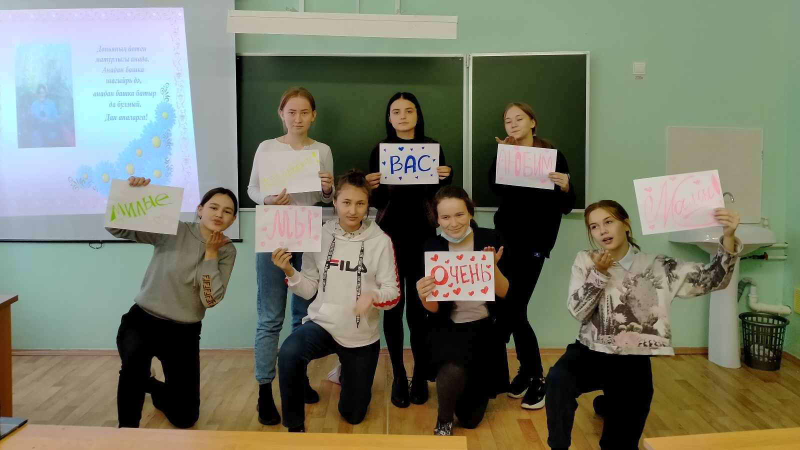 Иң беренчеләрдән булып әниләрен Тәтеш татар урта мәктәбенең 8 сыйныф укучылары Әхмәтҗанова М.М. җитәкчелегендә котладылар. Бу бәйрәмгә алар “Бөтен әниләргә багышлана” флешмобы үткәрделәр, “Әниләр көне белән!” слайд-шоу һәм “Әнигә бүләк” видеоролигы әзерләделәр. Һәр әнигә аларның котлаулары бик ошады. Әлеге чара ZOM аша үткәрелде