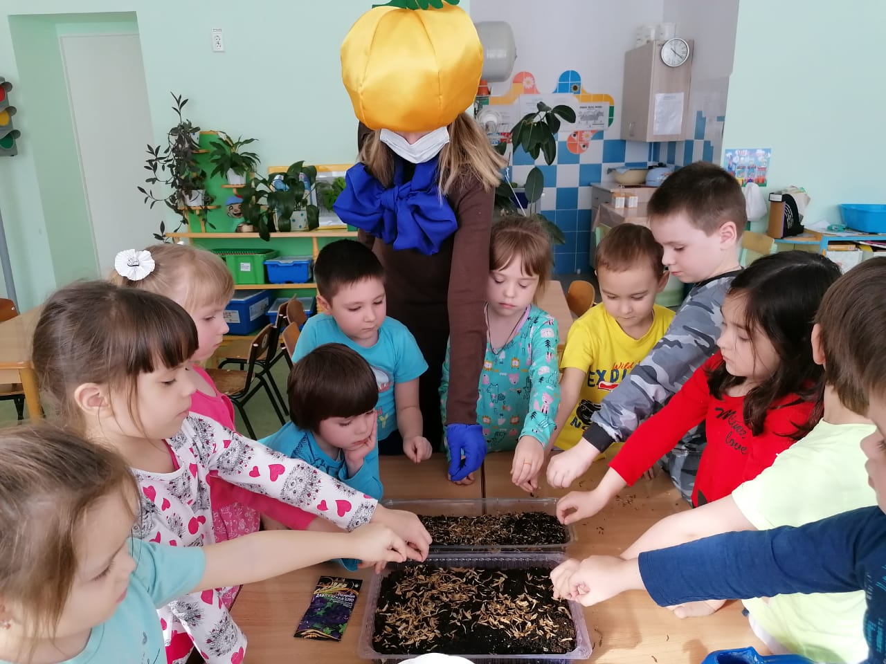 .Бөтендөнья кыргый табигать көне кысаларында «Каенкай» балалар бакчасының өлкән төркем балалары кунакларны Шалун һәм Тихоня эколятларын каршы алды. Алар балаларга әйләнә-тирә мохитне саклау турында сөйләделәр. Балалар аны саклау өчен нәрсә эшли алачаклары турында кызып-кызып фикер алыштылар. Балалар кунаклар белән бергә чәчәкләр, балалар бакчасын бизәү өчен үсентеләр утырттылар. Шалун һәм Тихоня аларга «Табигатьне яратыгыз һәм саклагыз» дигән плакат ясарга, аны рәсемнәр һәм журналлардан кисемнәр белән бизәргә ярдәм иттеләр.