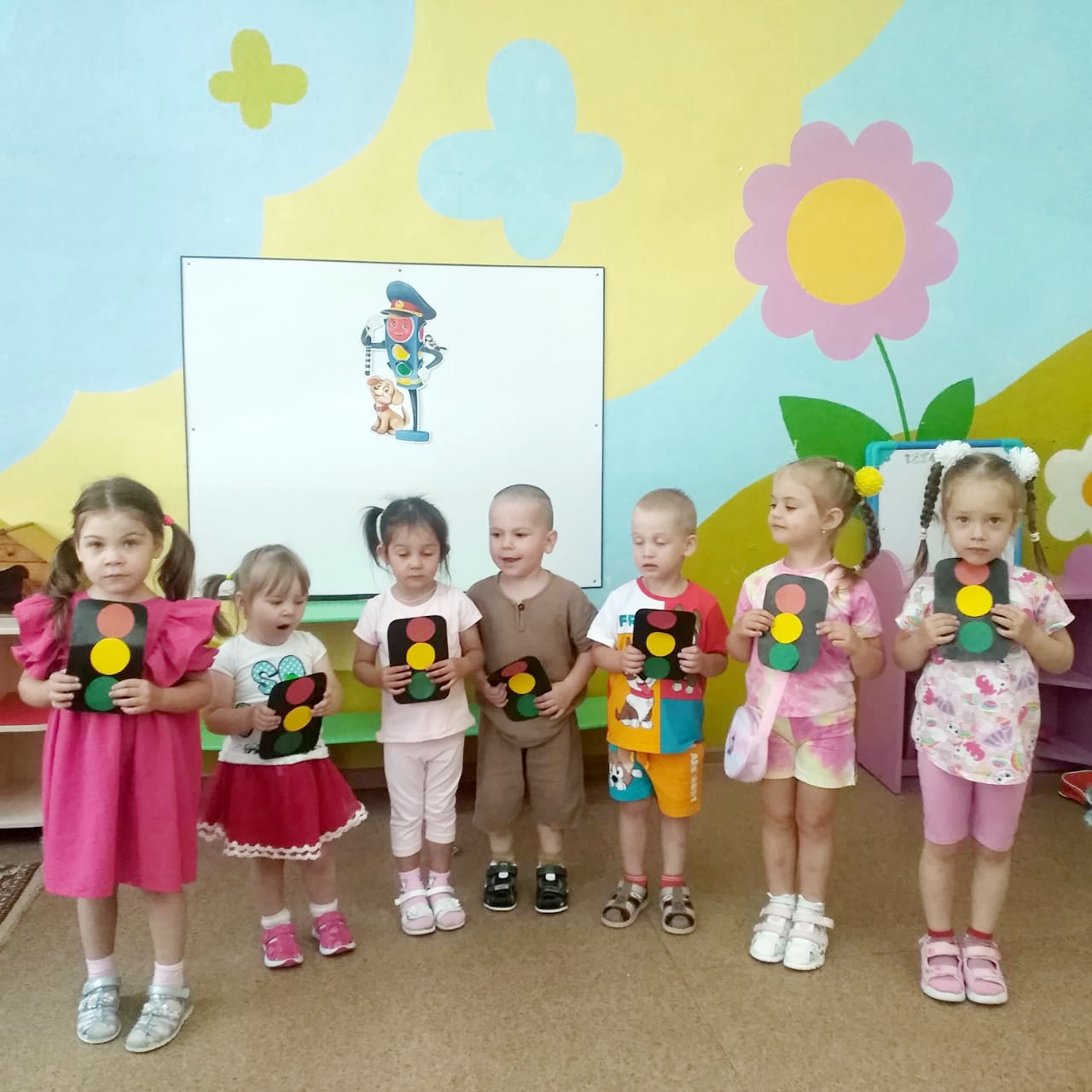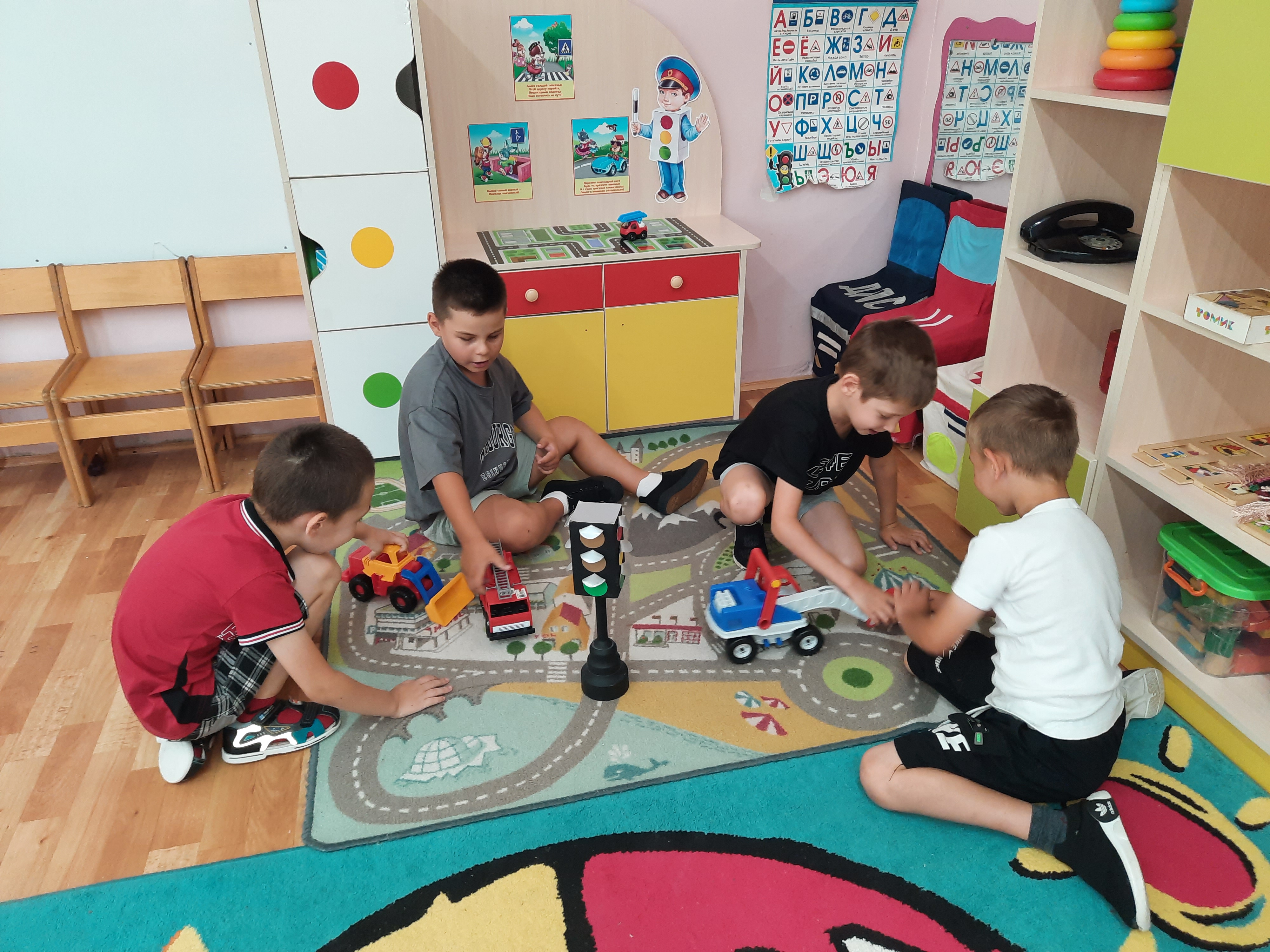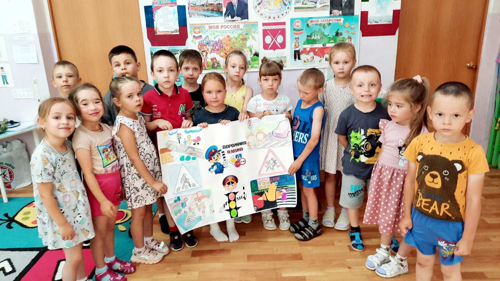 Балалар белән әңгәмәләр үткәрелде: «Светофор-безнең дустыбыз», «Юлның төзелеше». Балалар «Җәяүлеләр әлифбасы» плакатын әзерләү буенча коллектив эшләрдә актив катнаштылар. Шулай ук шәһәр урамнары буйлап максатчан йөрү үткәрелде, анда балалар транспортны һәм җәяүлеләр үтүен күзәттеләр. Кече яшьтәге балалар «Светофорчики» аппликациясен башкардылар.