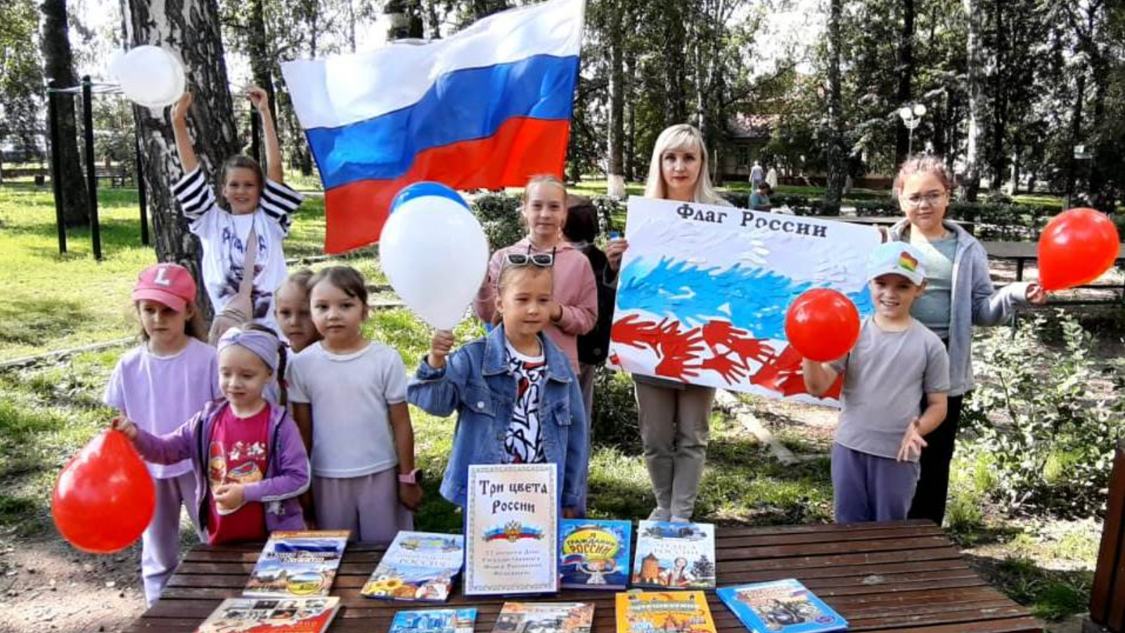 Россия Федерациясе Дәүләт флагы көненә балалар китапханәсе хезмәткәрләре Үзәк паркта «Россия флагы – дан символы!» патриот сәгате уздырдылар.