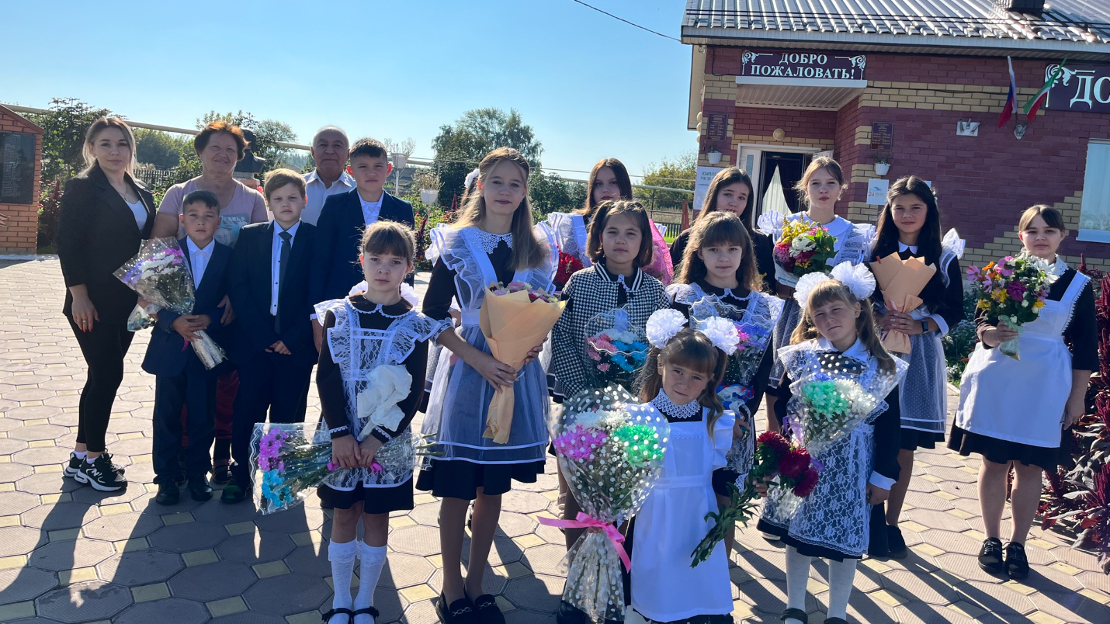2 сентябрь конне Бачшы авылы клубы янында укучыларын беренче уку көне белән авыл җирлеге башлыгы Хафиз Әхмәт улы Измайлов,авыл клубы мөдире Һәм