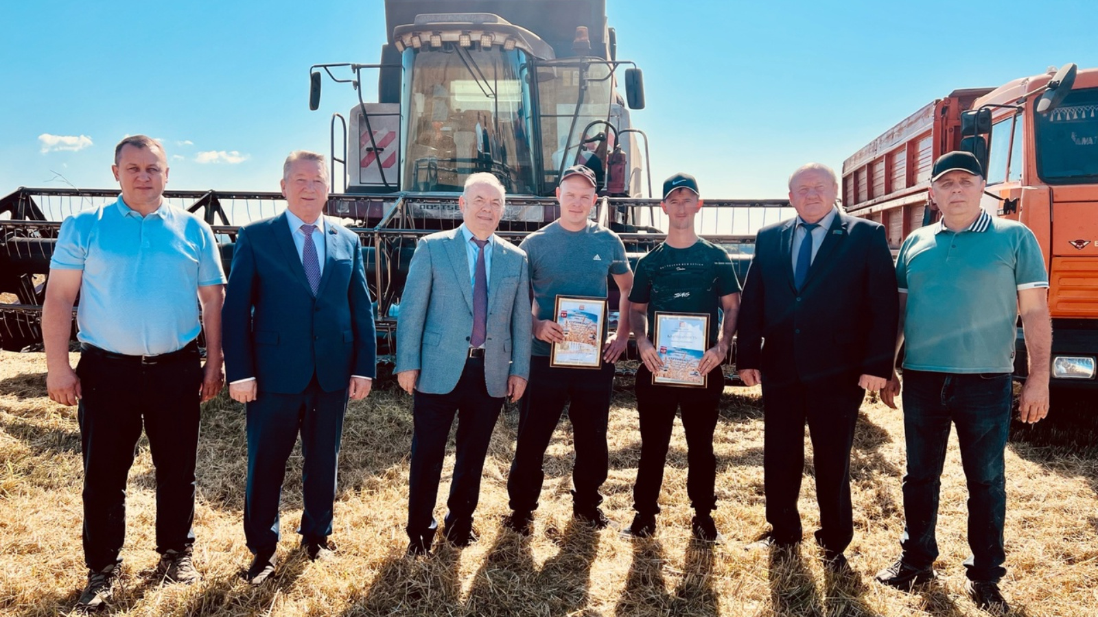2024 ел уңышын җыюда ирешкән уңышлары өчен Тәтеш муниципаль районының «ACROS-550» комбайнында беренче булып 1000 тонна ашлык суктырган «АГРОСОЮЗ» агрофирмасы комбайнчылары Сумбаев Андрей Анатольевич һәм Кузинасы Дмитрий Сергеевич бүләкләнделәр.