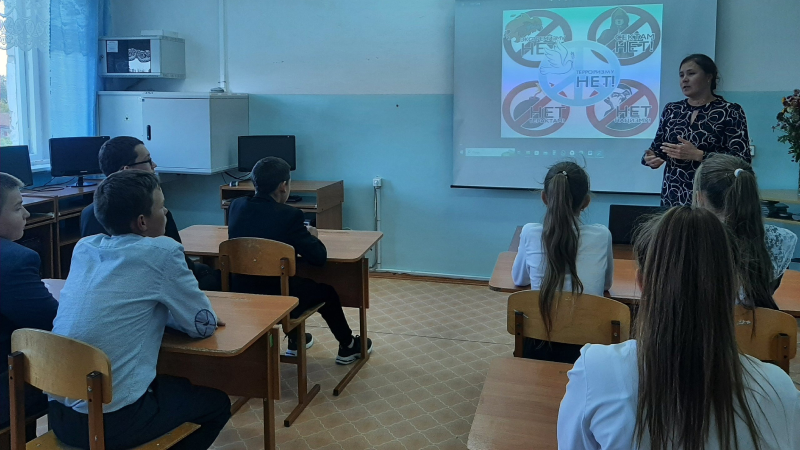 Мәктәп укучылары арасында экстремистик һәм башка радикаль карашларны,шул исәптән неонацизм,милләтчелек һәм ксенофобия идеяләрен,аларны деструктив эшчәнлеккә җәлеп итү омтылышларын кисәтү һәм булдырмау максатында 5-9 сыйныф укучылары белән " Экстремизмга һәм терроризмга юк дип әйтик "дигән әңгәмә үткәрелде.