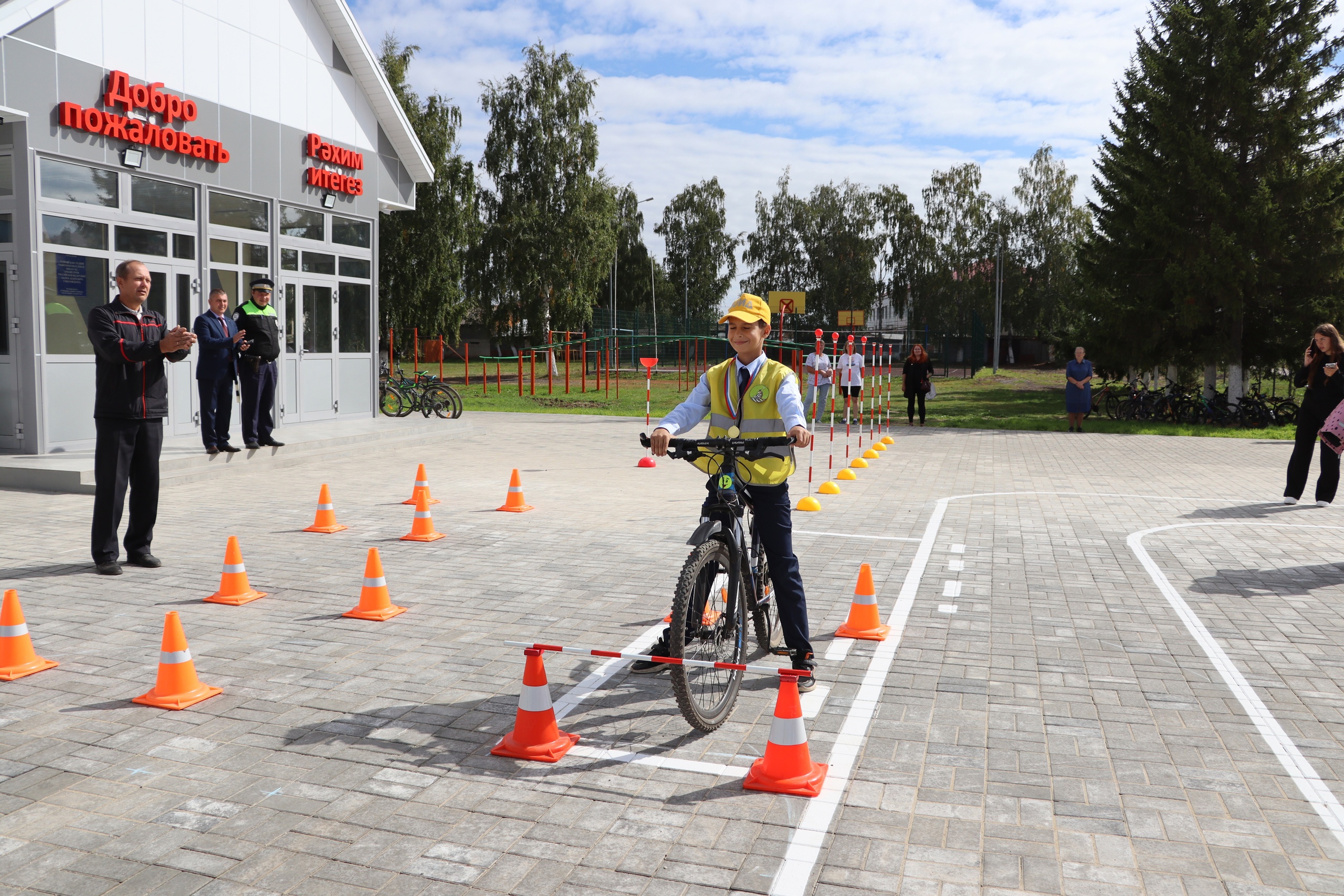 Яшь инспекторлар балалар өчен кызыклы бәйрәм оештырдылар, куркынычсызлык иминлеге укытучысы Похлебкин А.В. әзерләгән яңа мәйданчыкта велосипедта дөрес йөрү күнегүләрен курсәттеләр. Беренче сыйныф укучылары барлык юл йөрү кагыйдәләрен үтәргә вәгъдә иттеләр.