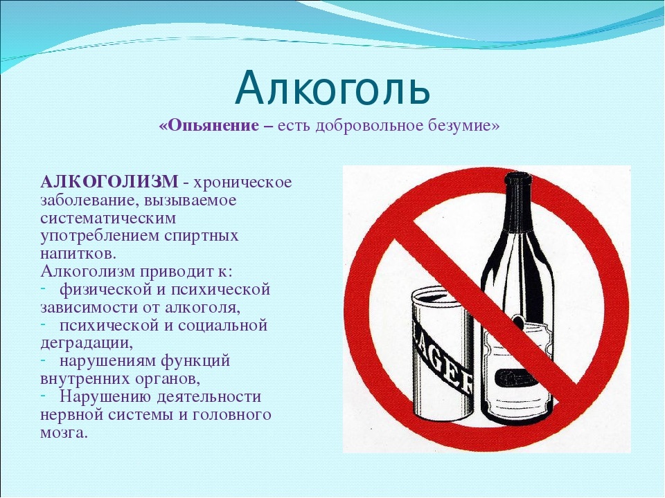 Сәламәт яшәү рәвешенең төп принципларыннан берсе булып алкоголь кулланудан баш тарту тора, чөнки ул сәламәтлекнең начараюына китерә, иҗтимагый тормышка зыян китерә: гаиләләргә каршылык тудыра, балалар тәрбияләү процессына актив катнаша һәм боза, хезмәт процессларын боза, законсыз һәм әхлаксыз тәртип тудыра.