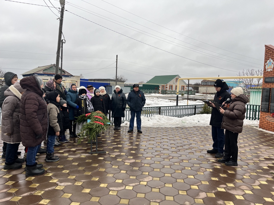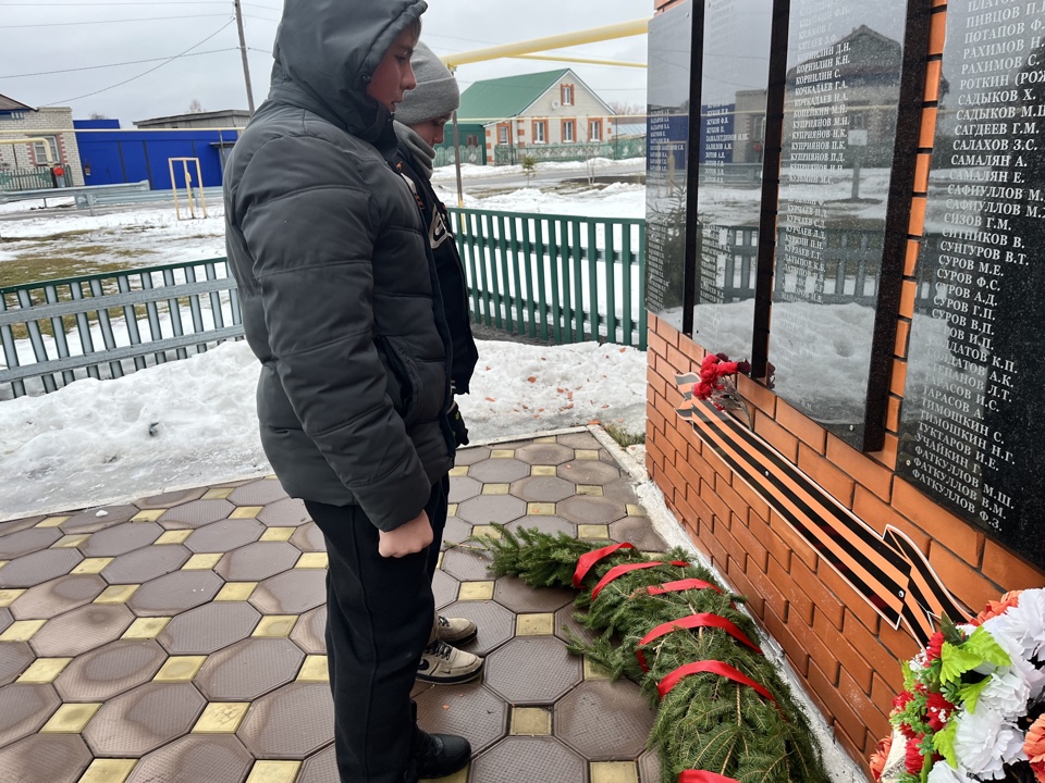 Ватанга фидакарьләрчә һәм тугрылыклы хезмәт иткән, авыр сынаулар вакытында да аның азатлыгы хакына үз гомерләрен биргән батырлар истәлегенә хөрмәт йөзеннән авыл халкы килде, алар гирлянда куйдылар һәм бер минут тынлык белән искә алдылар.