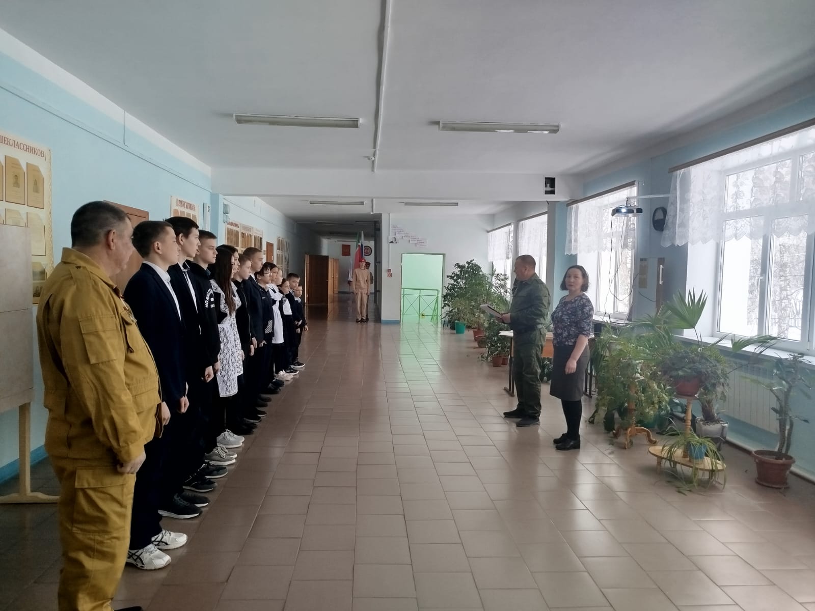 Укучылар, тарихи хәтерне саклауның мөһимлеген аңлап, аларның батырлыклары турындагы хикәяләрне игътибар белән тыңладылар. Линейкадан соң Әфганстан җирендә хәрби бурычын үтәгәндә һәлак булган сугышчы - интернационалист Г.Л. Илюшкин истәлегенә куелган обелискка гирлянда һәм чәчәкләр салдылар.
