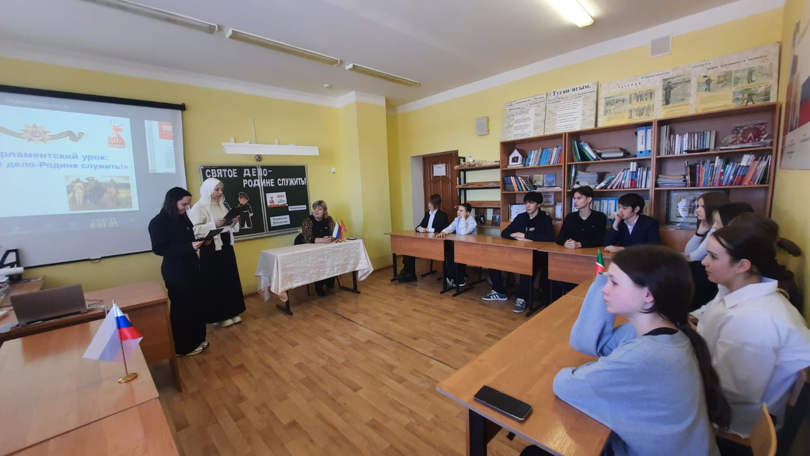 2025 елның 17 - 28 февралендә Тәтеш муниципаль районы гомуми белем бирү учреждениеләрендә «Ватанга хезмәт итү – изге бурыч!» темасына парламент дәресләре уза. Татарстан Республикасында игълан ителгән Ватанга хезмәт итү - изге бурыч!” (Ватанга хезмәт итү - изге бурыч!) һәм Бөек Ватан сугышында Җиңүнең 80 еллыгына багышланган.