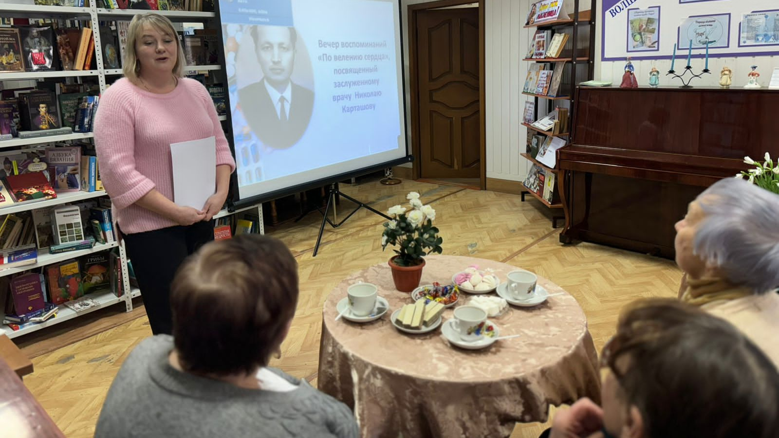 Үзәк китапханә хезмәткәрләре атказанган табиб Николай Ильич Карташовка багышланган «Йөрәк чакыруы һәм кушуы буенча» истәлекләр кичәсе үткәрделәр. Чара барышында китапханәчеләр хөрмәтле докторның хезмәт юлы турында сөйләделәр. Җыелышта катнашучылар аның эш көннәрендә булган истәлекләре, кызыклы тарихлары белән уртаклаштылар. Слайд-шоуда Тәтеш үзәк район хастаханәсе тормышыннан төрле чорлардагы уникаль кадрларны күрергә мөмкин иде.