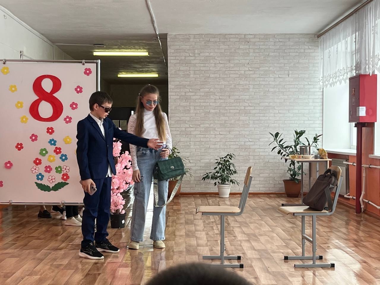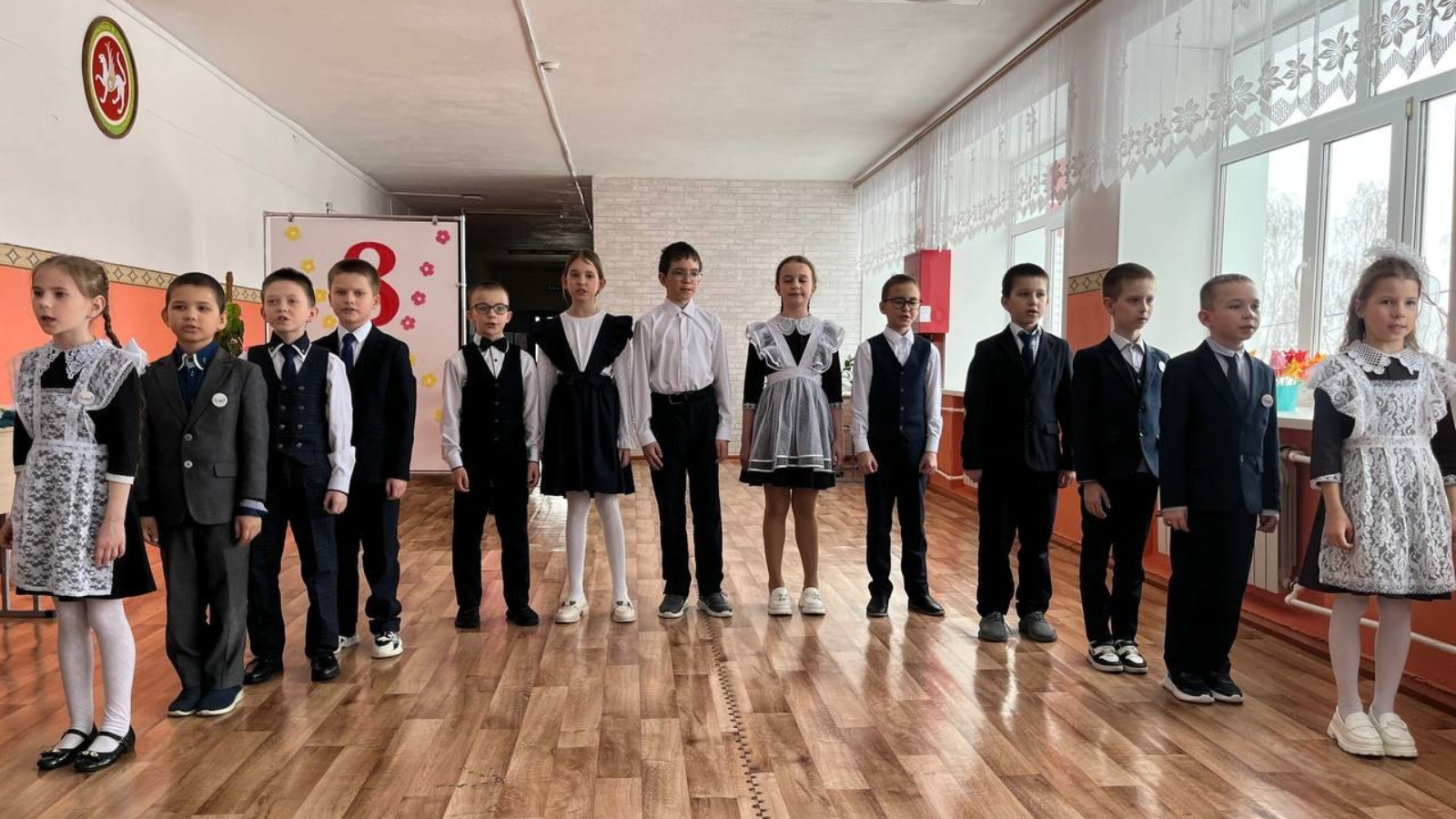 Укучылар әниләргә, кызларга һәм укытучыларга булган мәхәббәтләрен белдерү өчен котлаулар һәм иҗади номерлар әзерләделәр.