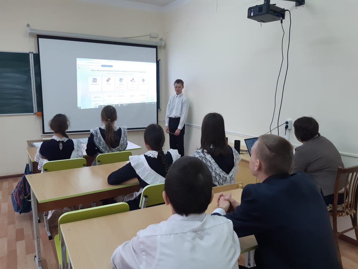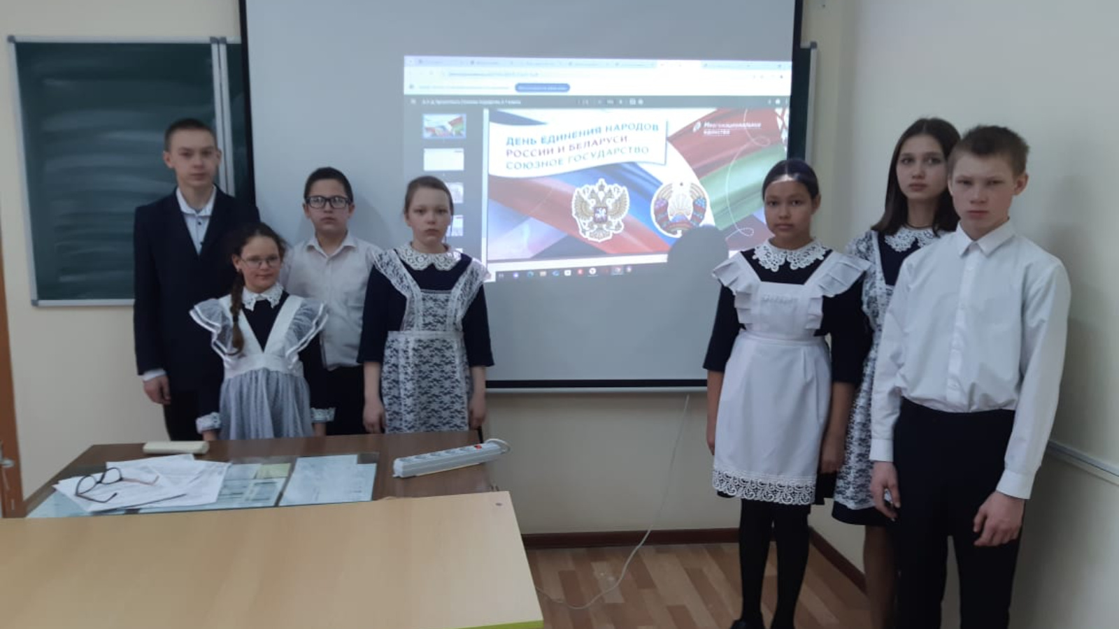 Россия һәм Белоруссия халыкларының бердәмлеге көнен бәйрәм итүгә һәм ике ил арасындагы мөнәсәбәтләрне ныгытуга багышланган дәрестә мәктәп укучылары ике дәүләт арасында хезмәттәшлекнең төп юнәлешләре турында белделәр, безнең халыкларны нәрсә берләштерүен искә төшерделәр.