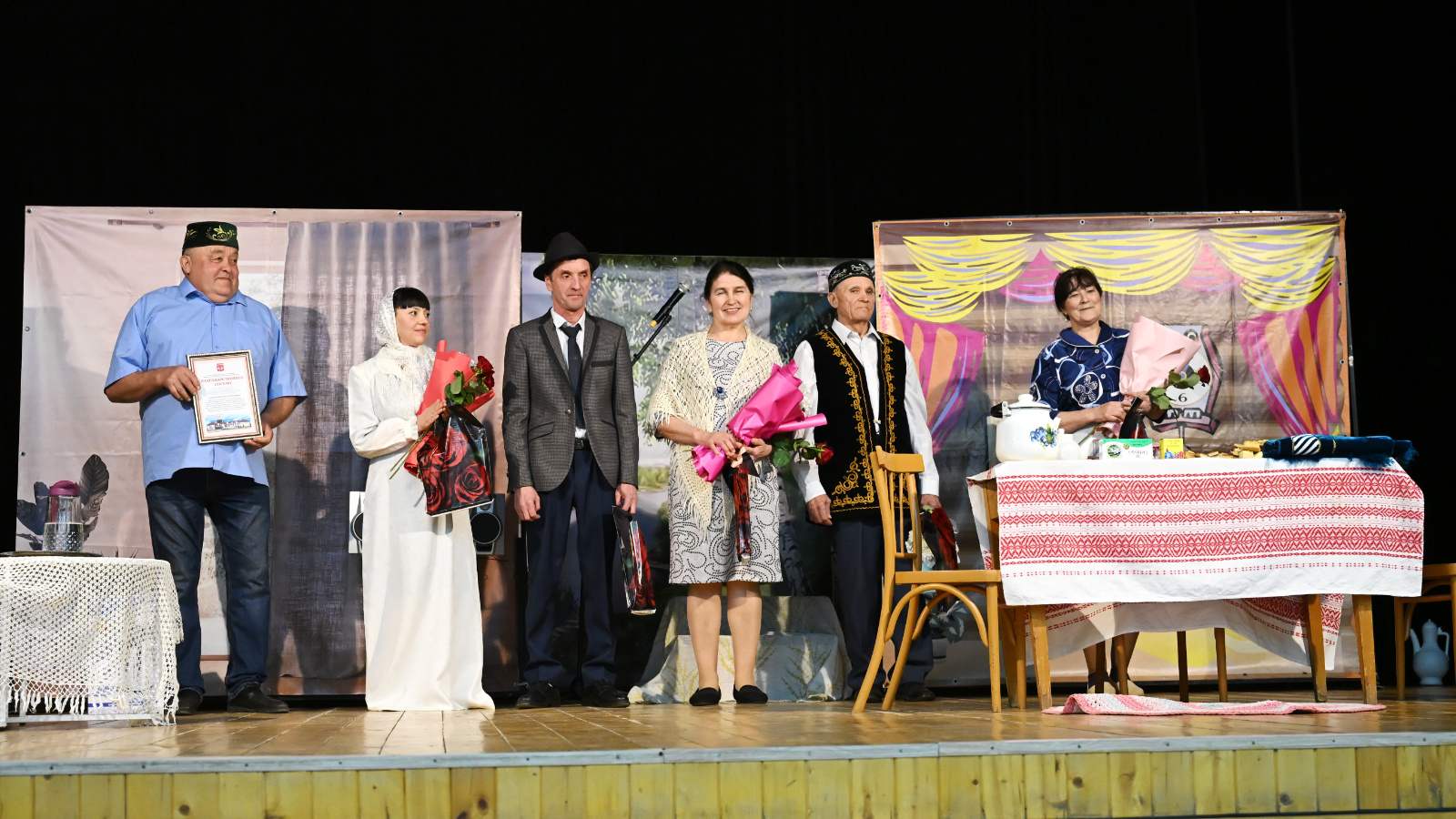 Спектакль азагында «Ихлас» халык театры коллективы район мәдәниятен үстерүгә керткән зур өлеше, югары профессионализмы, бетмәс-төкәнмәс энергиясе, илһамы һәм иҗади эзләнүләре өчен Татарстан Республикасы Тәтеш муниципаль районы башкарма комитеты мәдәният бүлегенең Рәхмәт хаты белән бүләкләнде.