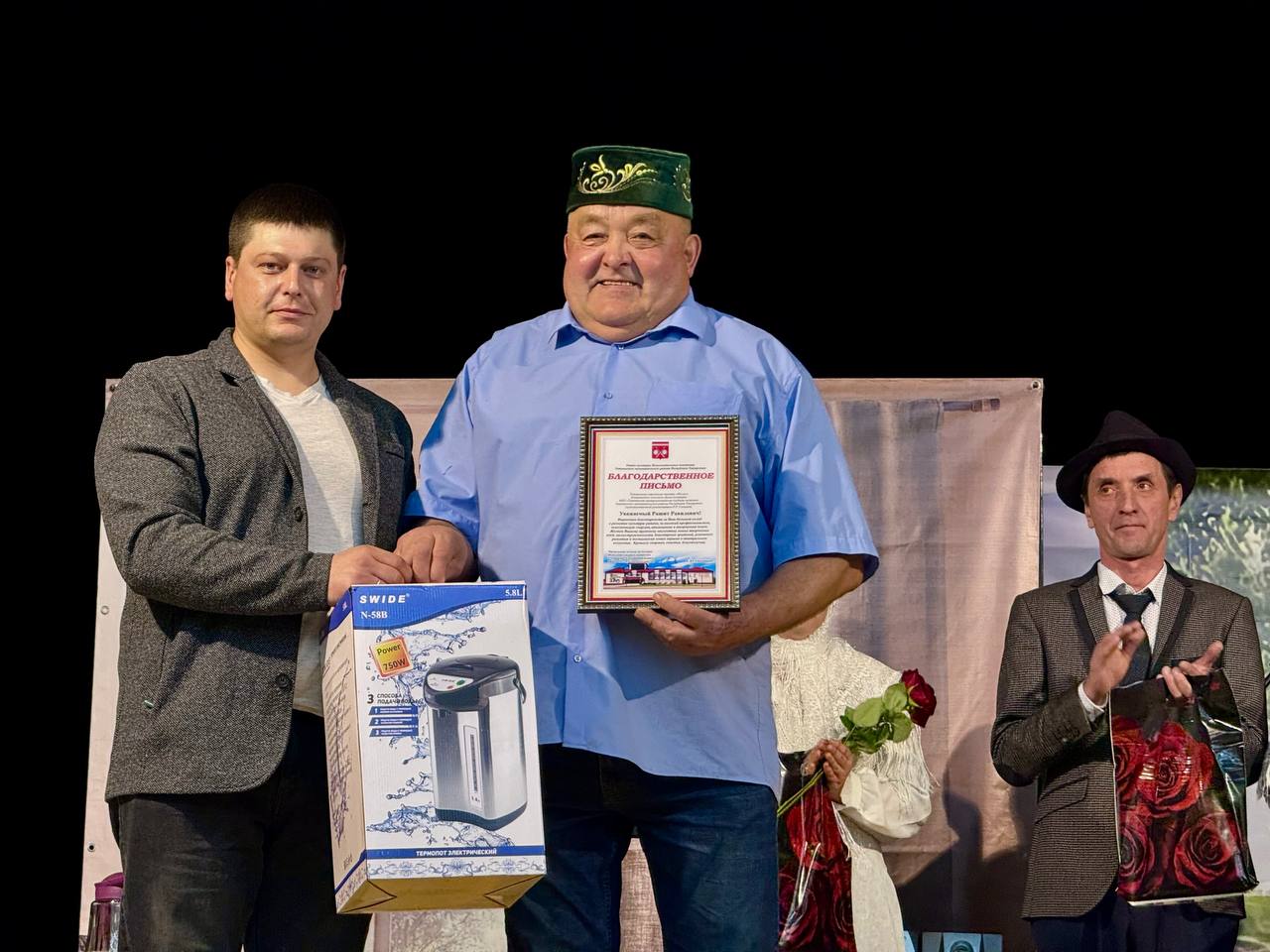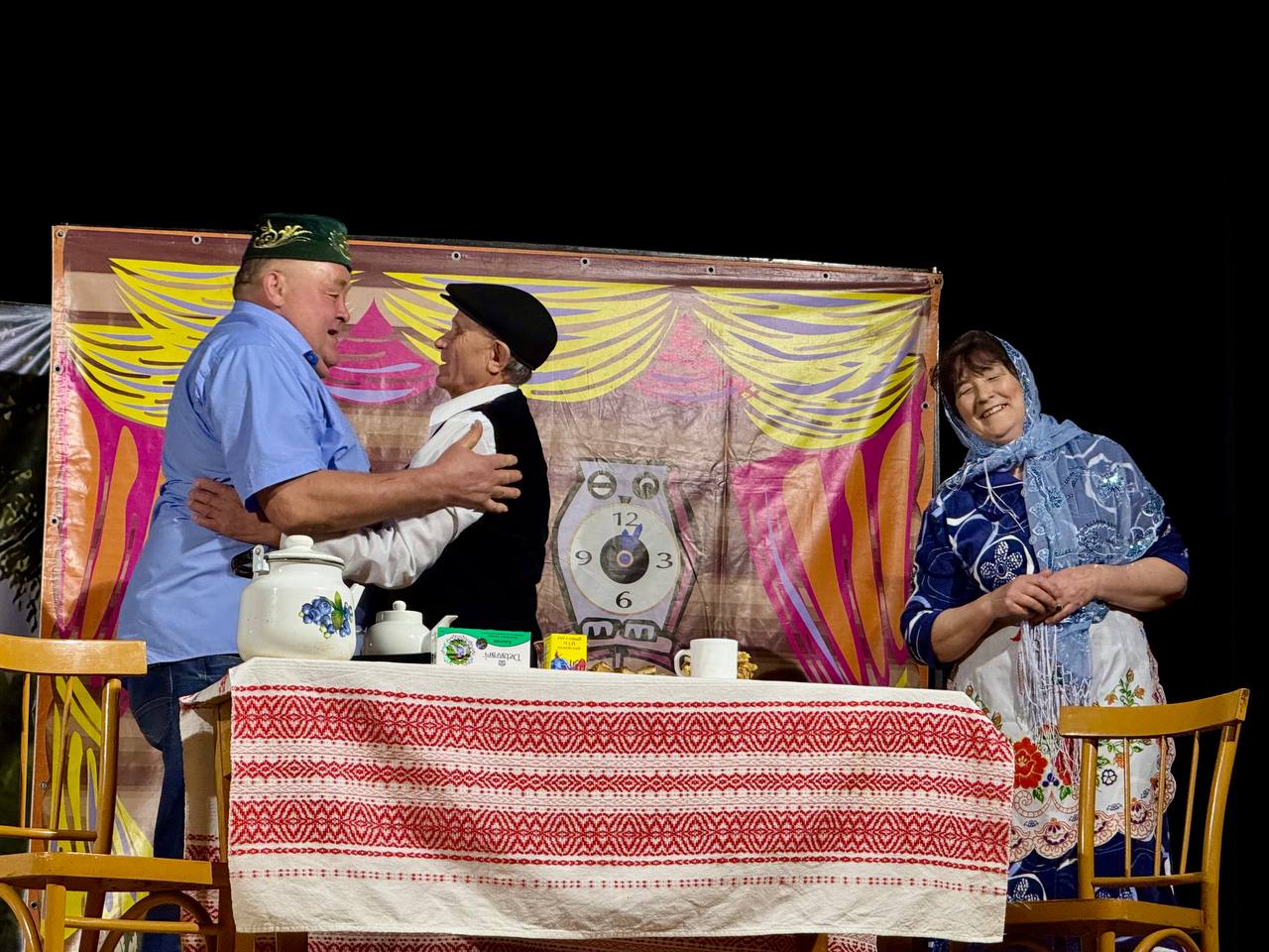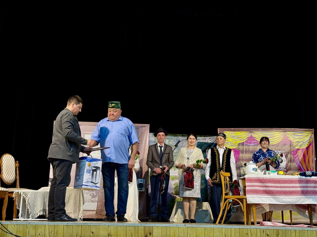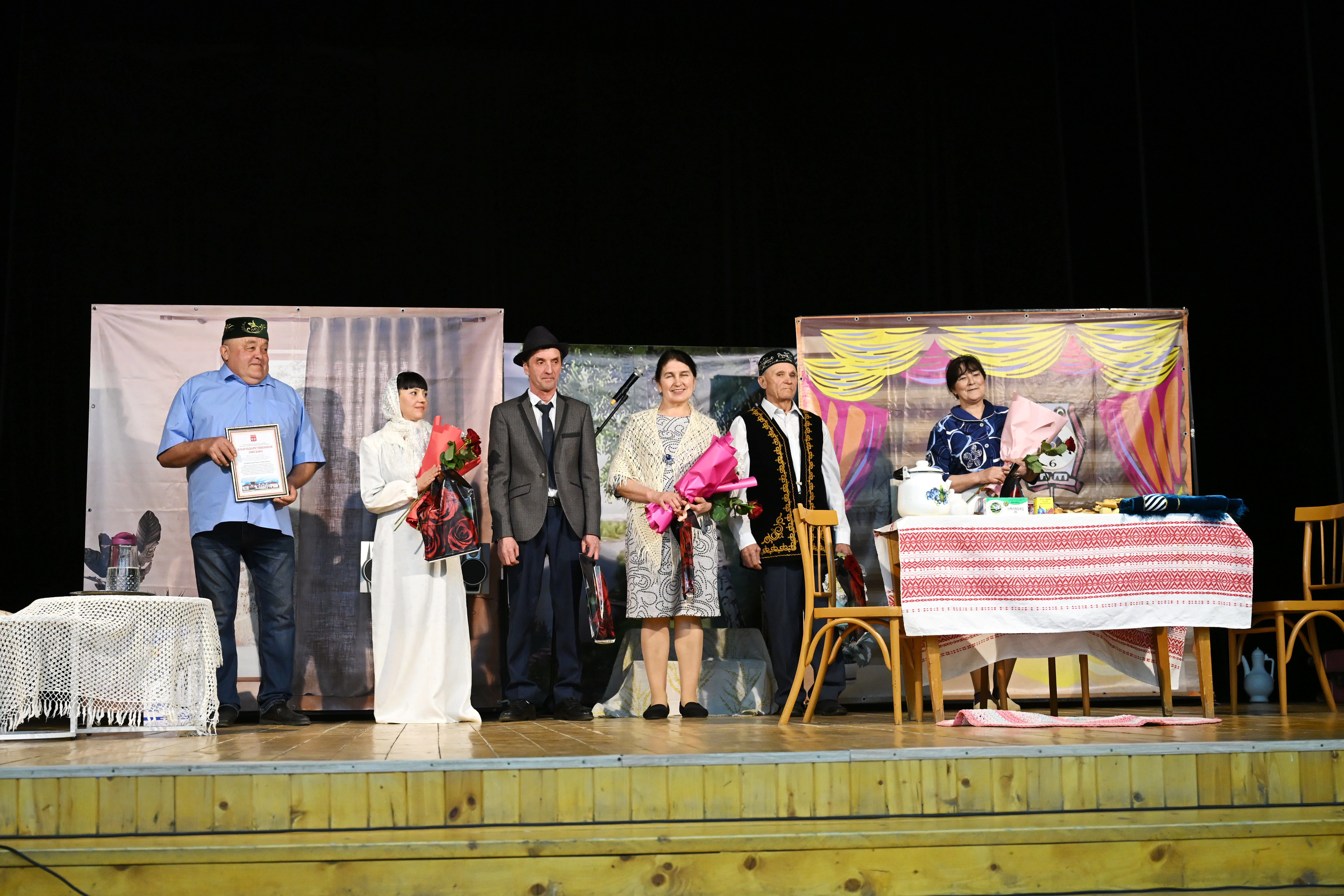 Спектакль азагында «Ихлас» халык театры коллективы район мәдәниятен үстерүгә керткән зур өлеше, югары профессионализмы, бетмәс-төкәнмәс энергиясе, илһамы һәм иҗади эзләнүләре өчен Татарстан Республикасы Тәтеш муниципаль районы башкарма комитеты мәдәният бүлегенең Рәхмәт хаты белән бүләкләнде.