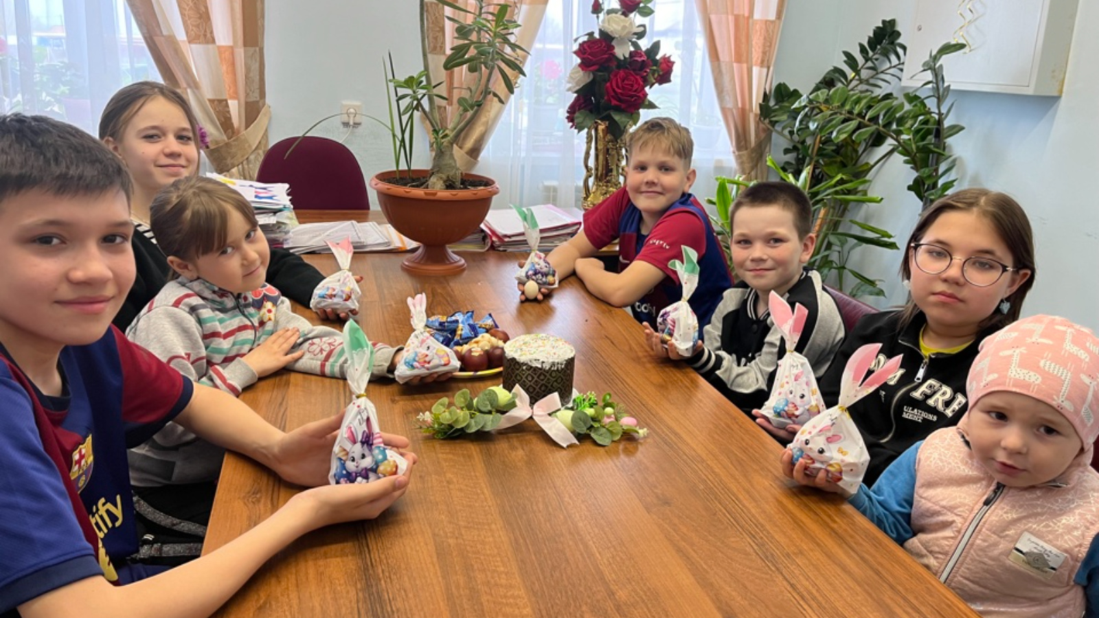 Соңыннан балалар кулич һәм буялган йомырка белән сыйландылар.