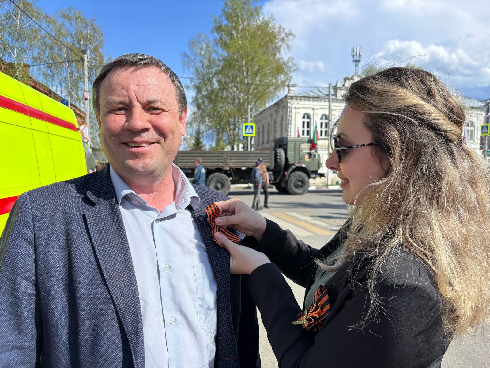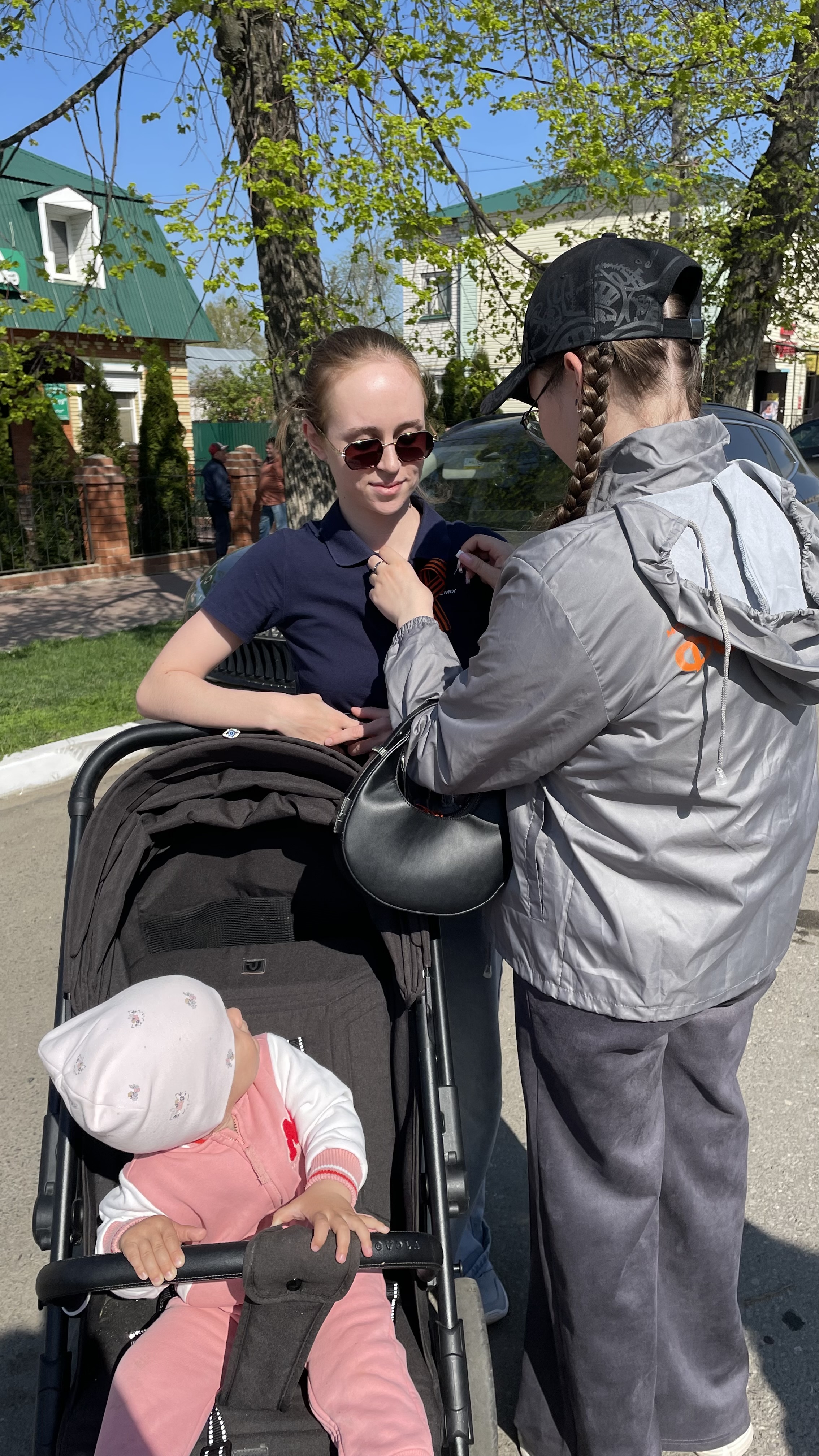 “П.С. Ханжин исемендәге 1 нче Тәтеш урта мәктәбе” отряды активистлары “Георгий тасмасы” акциясе үткәрделәр һәм шунда яшәүчеләргә Совет халкының батырлыгы турында искә төшерделәр. Балалар якынлашып килүче бәйрәм белән котладылар һәм Бөек Җиңү символы булган георгия тасмаларын бүләк иттеләр.