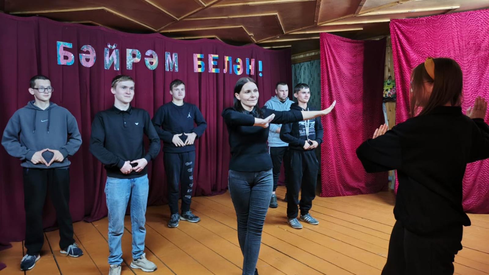 Хореограф татар биюенең төп хәрәкәтләрен үзләштерүнең барлык нечкәлекләрен аңлатты һәм күрсәтте, татар биюенең төп хәрәкәтләрен, йөрешләрен, кулларының, аякларының торышын өйрәтте.