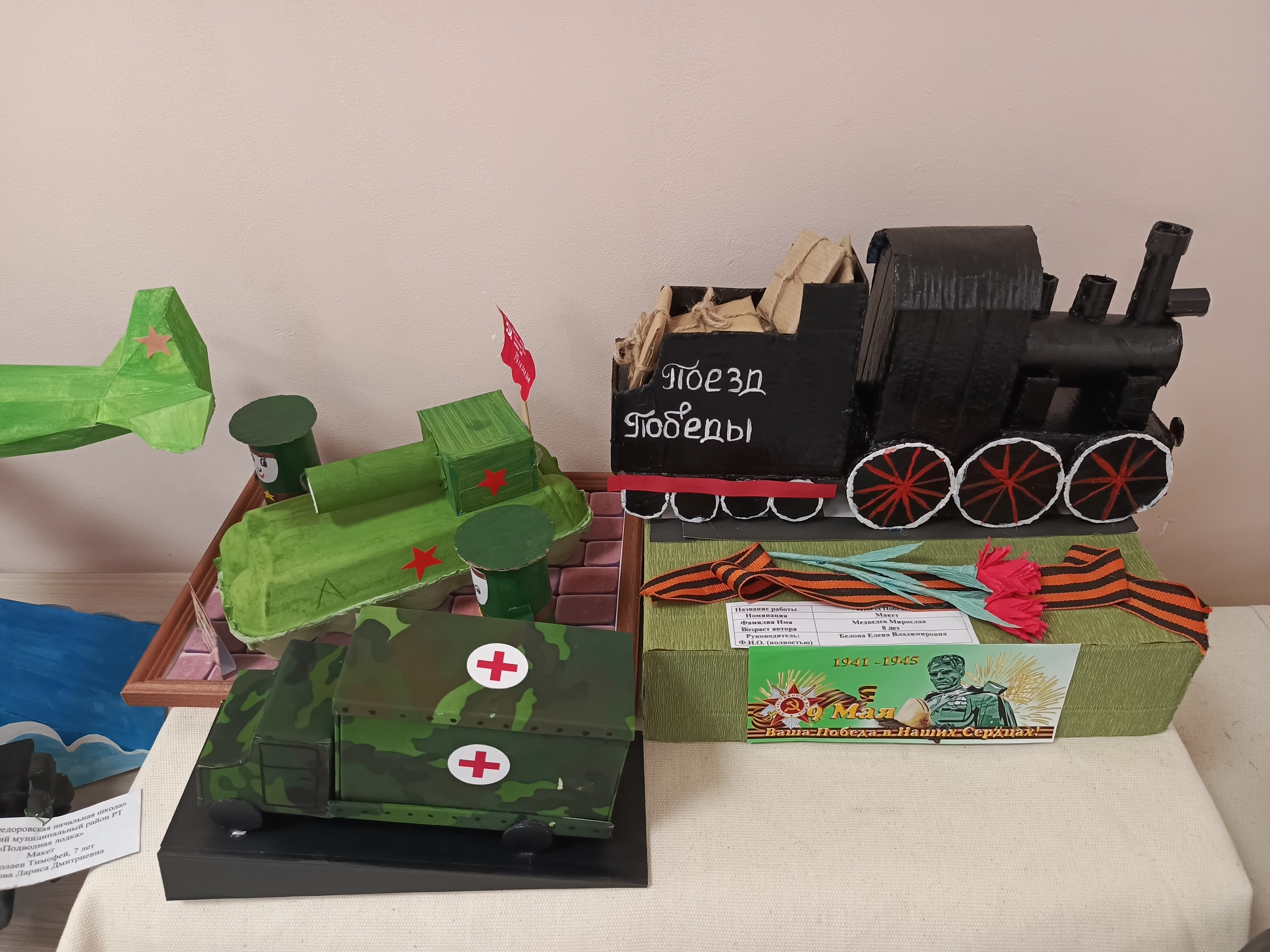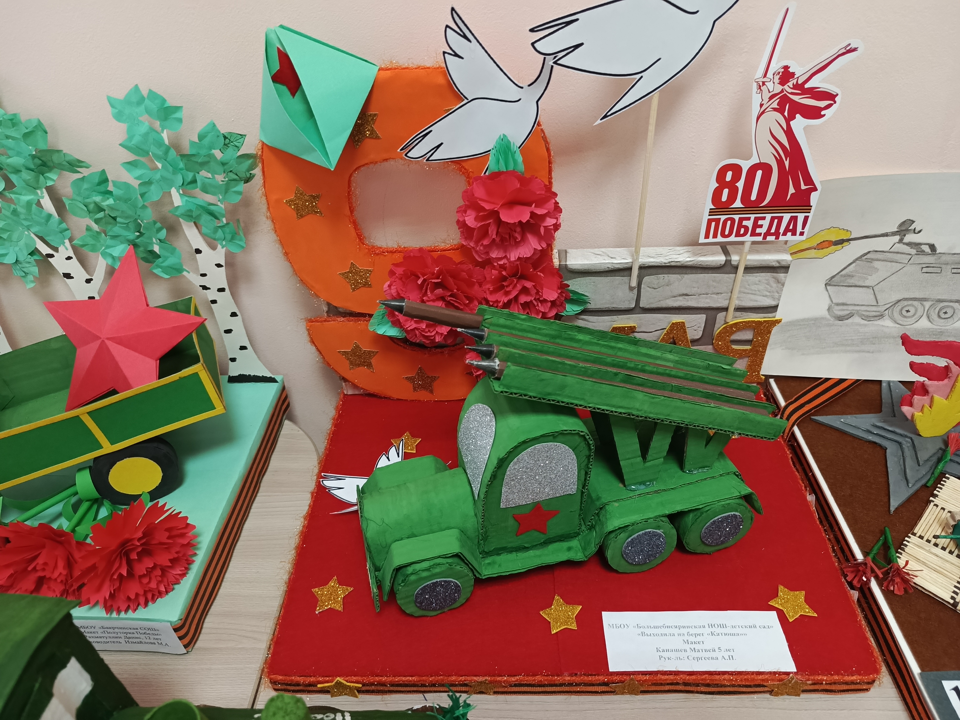 Конкурска 14 мәгариф учреждениесеннән «Пано», «Сюжет композициясе» һәм «Рәсем» номинацияләрендә 60тан артык эш керде. Өстәмә белем бирү үзәгендә «Җиңү техникасы» эшләренең күргәзмәсе оештырылды. Иң яхшы эшләр дипломнар белән бүләкләнәчәк.