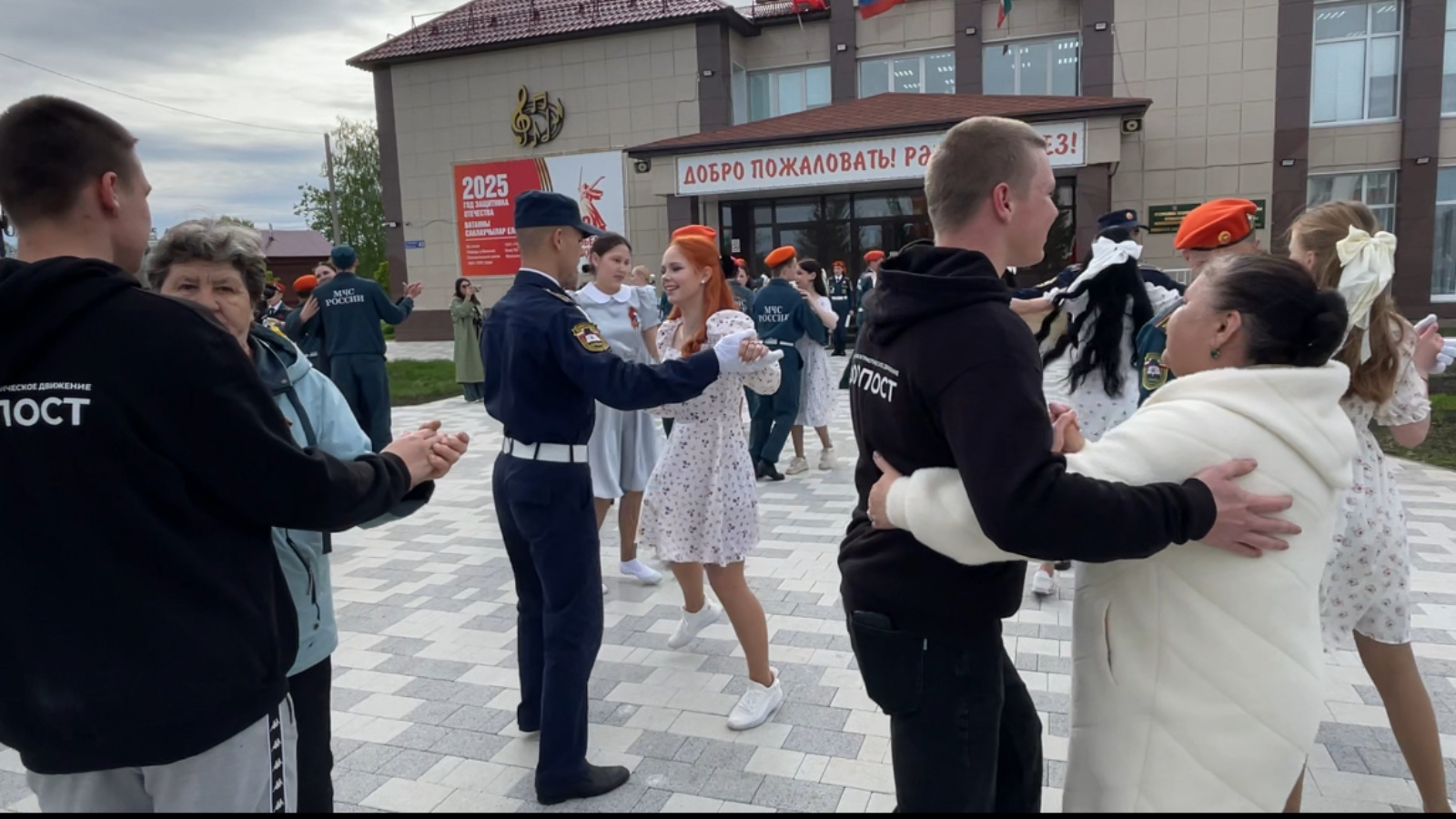 Бу истәлекле көнне мәйданчык чын бәйрәмгә әверелде, анда дуслык һәм үзара аңлашу атмосферасы хөкем сөрде. вальс авазлары астында йөзләрендә елмаюлы яшьләр теләүчеләргә биергә тәкъдим иттеләр. Өлкәннәр, балалар һәм өлкән яшьтәге кешеләр бу тантаналы вакыйгада шатланып катнаштылар, Ватаныбызны саклаган геройларны искә алдылар.