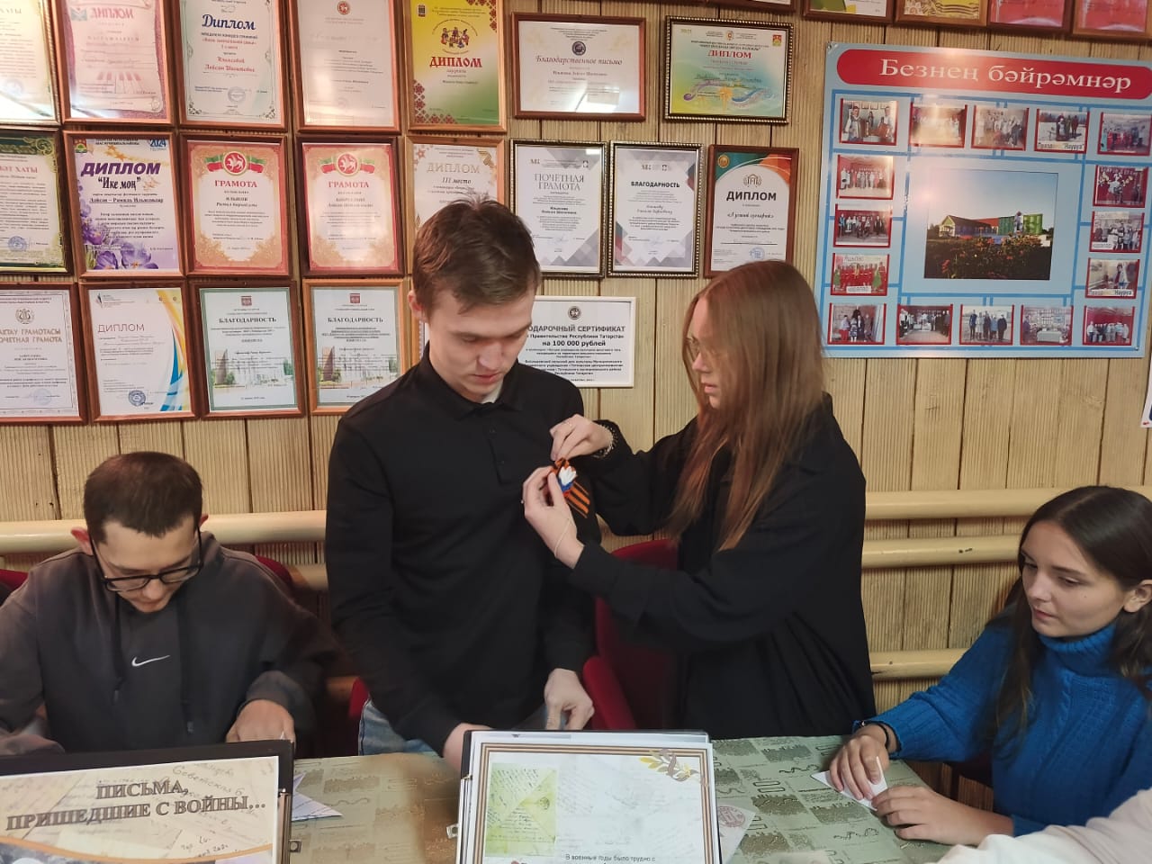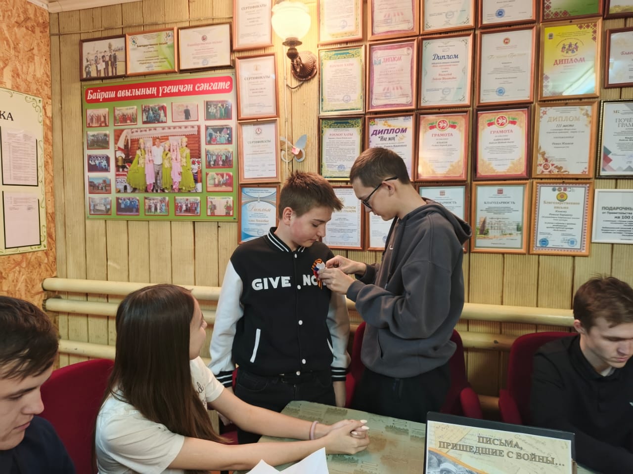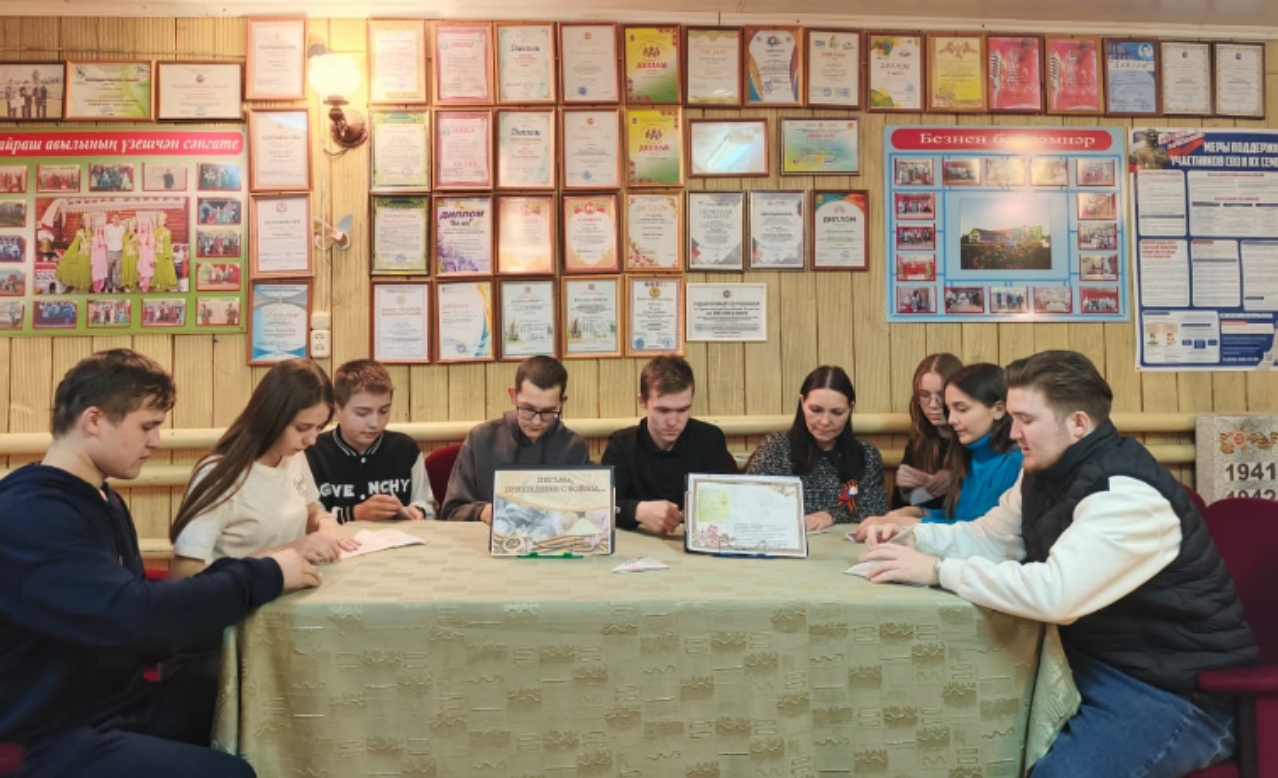 Балаларга сугыш елларында фронт хатларының нинди булуы турында сөйләделәр, фронт хатларын ясарга өйрәттеләр һәм аны открытка рәвешендә бизәделәр.