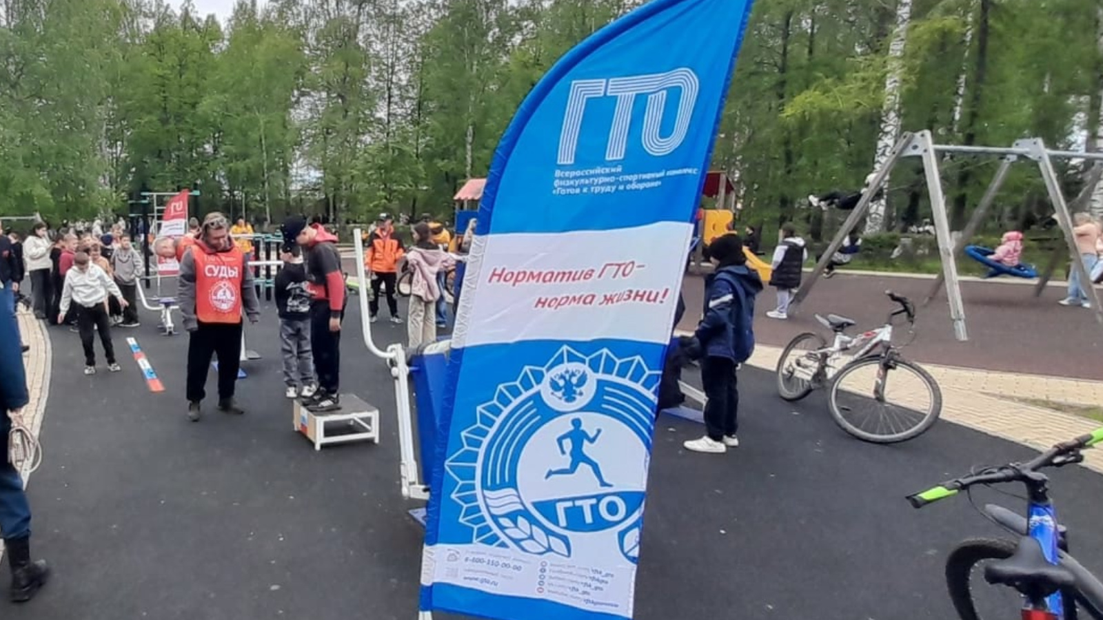 9 Майда, Бөек Ватан сугышында Җиңүнең 80 еллыгын бәйрәм итү кысаларында, спорт мәктәбе коллективы шәһәр паркында "ГТО"спорт мәйданчыгы эшен оештырды.