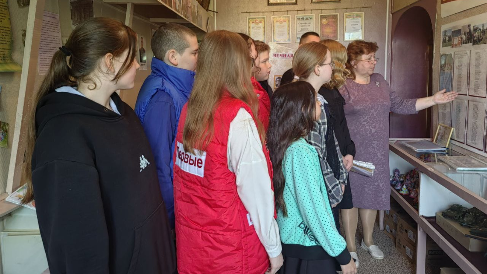 Нармонка авылы тарихына, аның район һәм ил үсешенә өлеш керткән халкына, шулай ук Бөек Ватан сугышы геройларына багышланган экспозицияләргә аерым игътибар бирелде. Балалар борынгы фоторәсемнәрне, документларны кызыксынып карадылар, фронттан килгән солдатларның хатларын укыдылар.