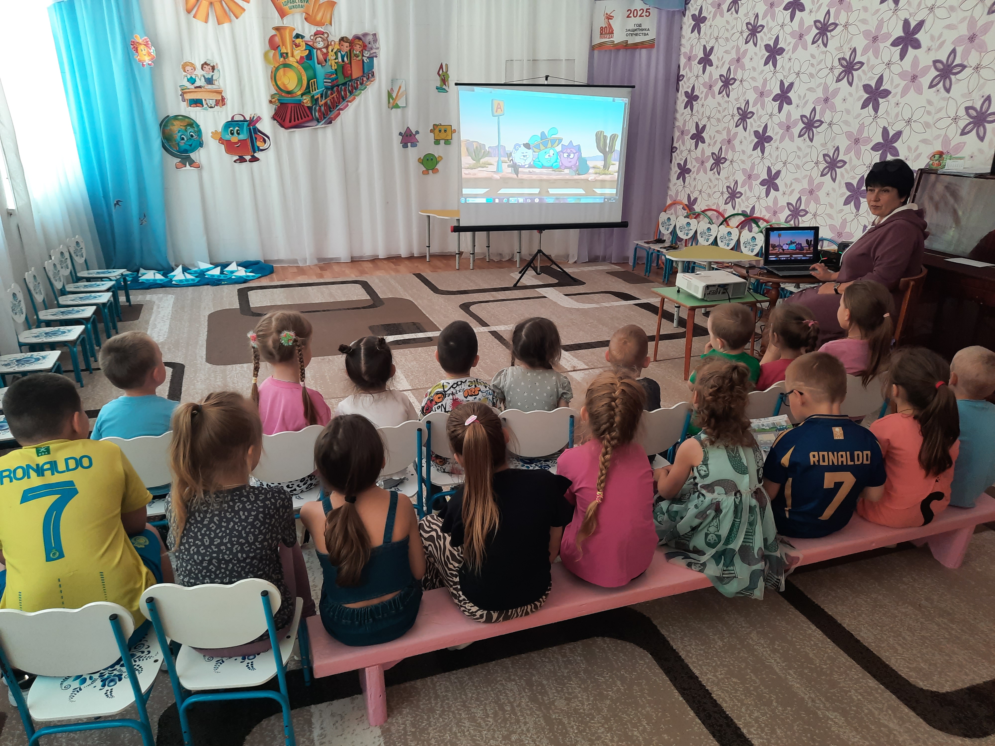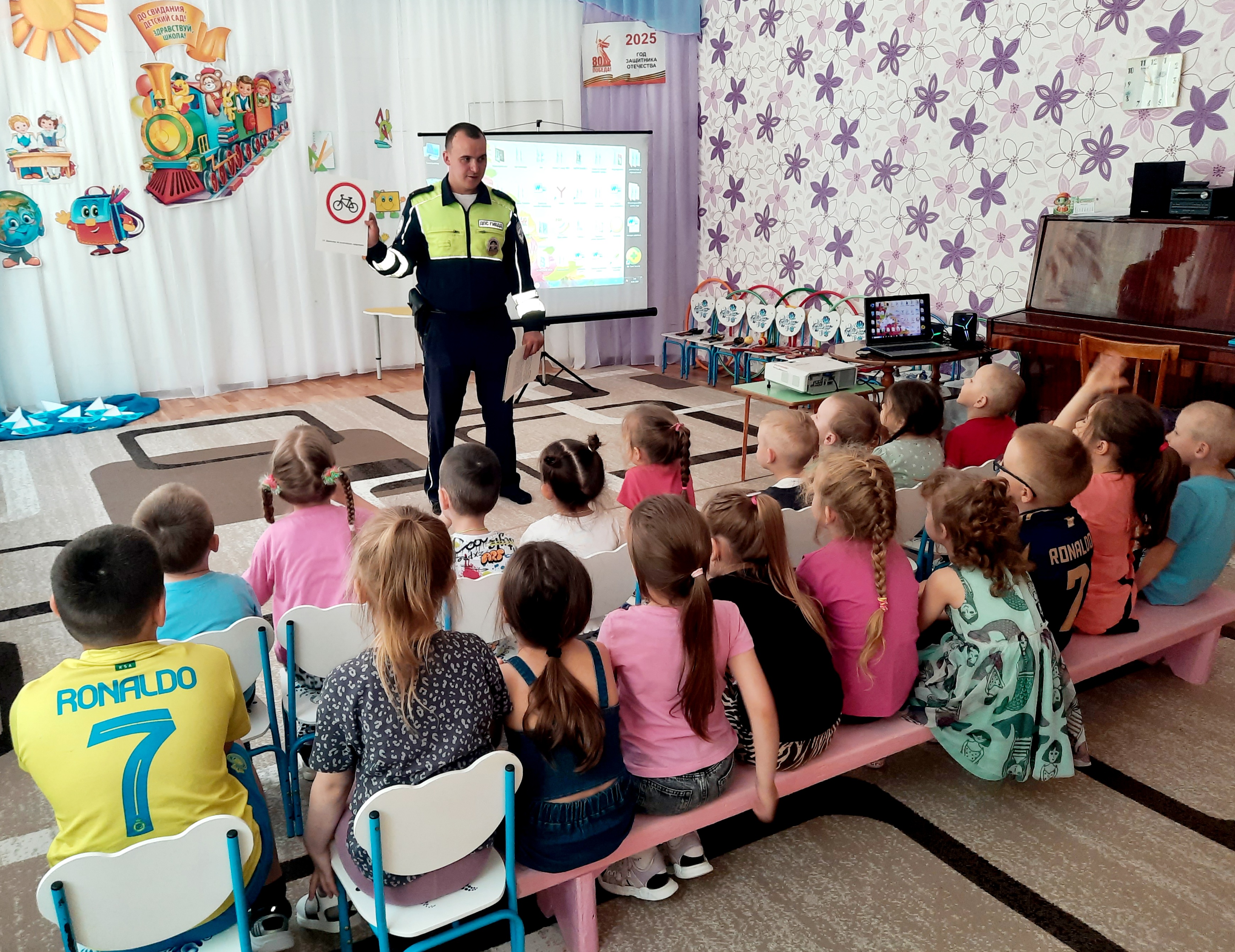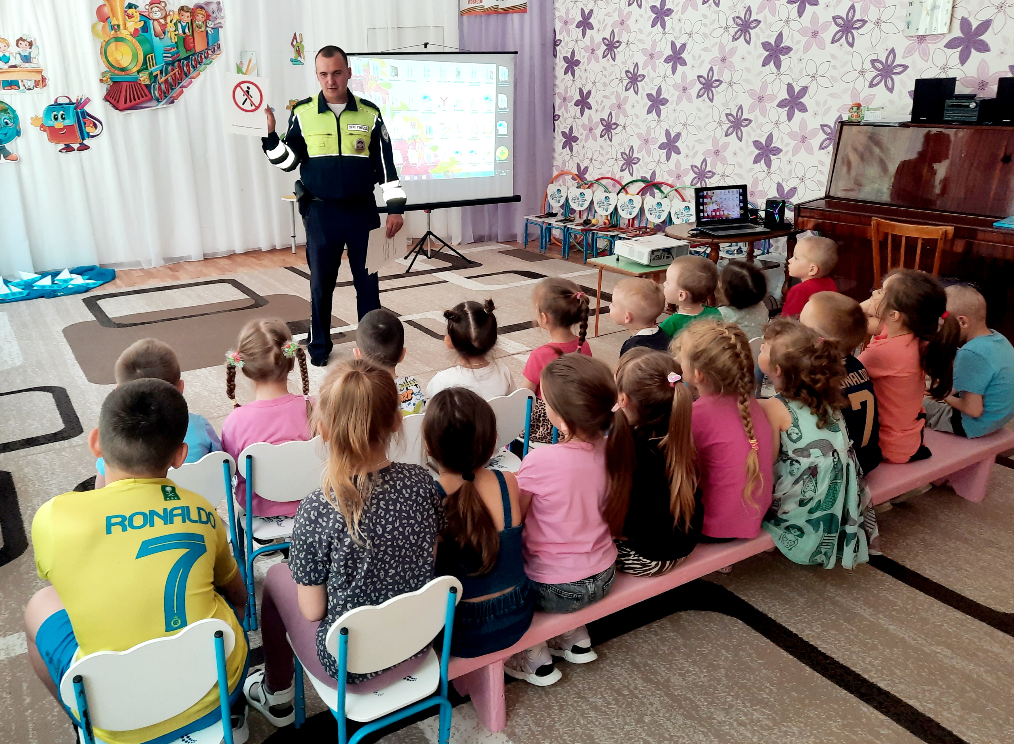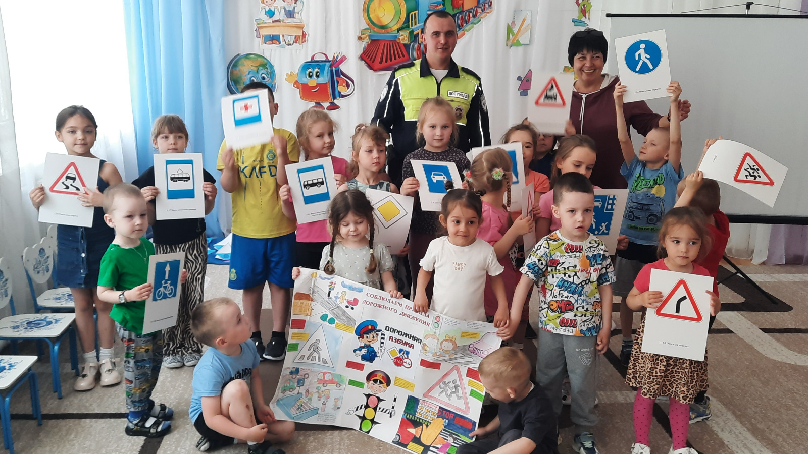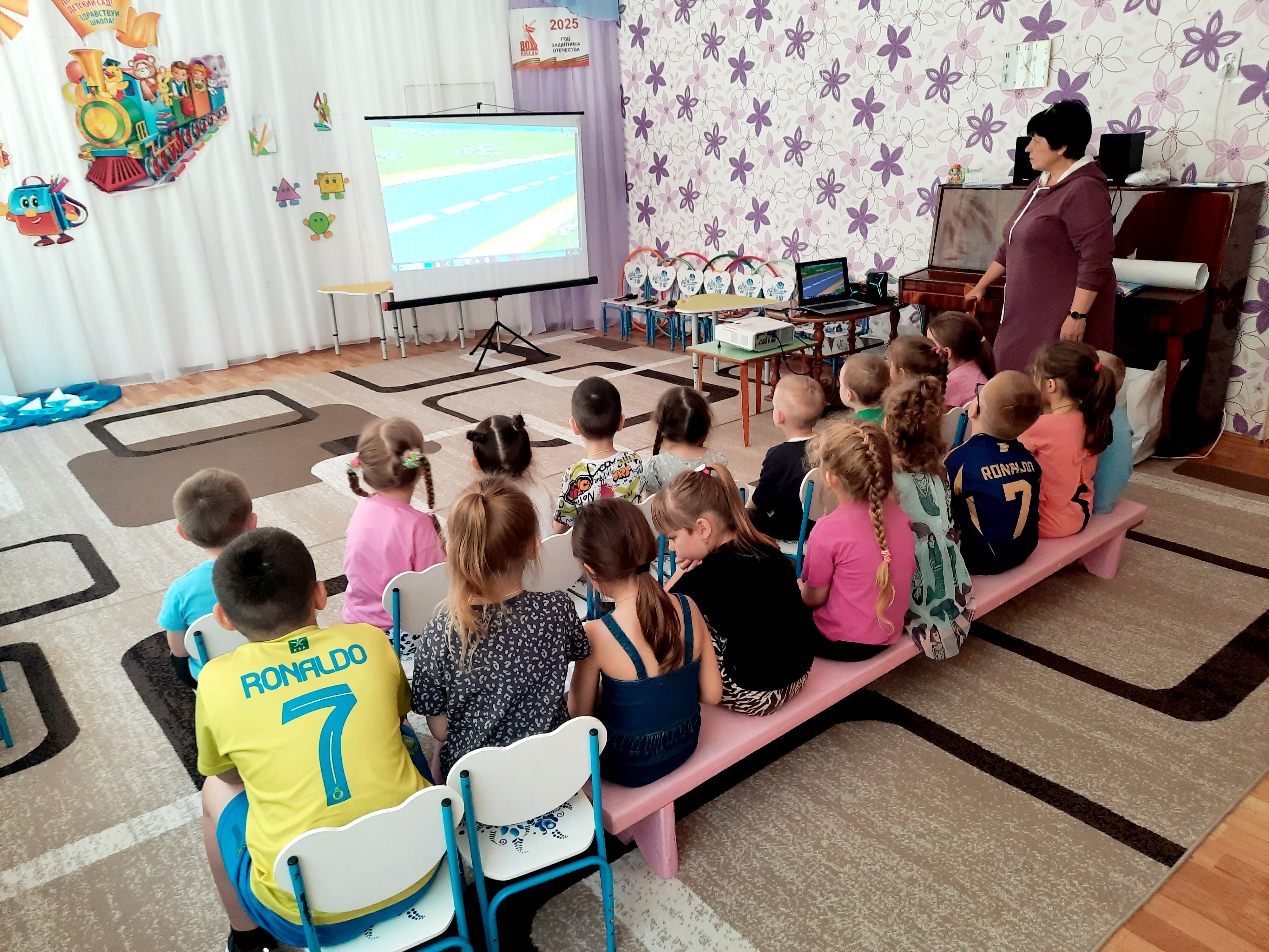 Инспектор белән бергә балалар юлда үз-үзеңне куркынычсыз тоту кагыйдәләрен һәм юл билгеләрен, җәяүлеләр кагыйдәләрен, балаларны автомобильдә йөртү кагыйдәләрен искә төшерделәр һәм тәүлекнең караңгы вакытында фликерның әһәмияте турында сөйләделәр. Алсу Хәлиловна велосипедта йөрү кагыйдәләре турында сөйләде, кызыклы уен уздырды, анда балалар пазллардан рәсемнәр җыйдылар һәм барысы бергә велосипедта йөрү турында өйрәтүче мультфильм карадылар.