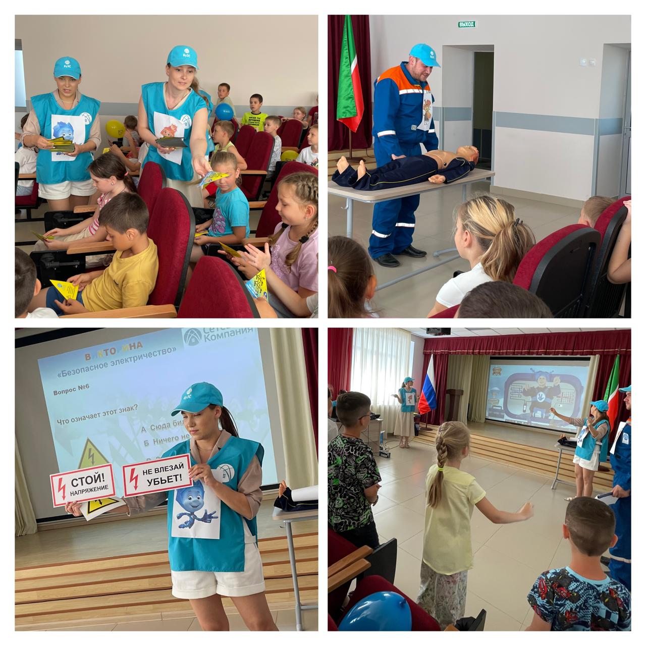 Аннары балаларны «Сетевая компания» АҖ филиалының Тәтеш РЭС «Буа электр челтәрләре» яшьләр комитеты «Имин каникуллар» акциясе үткәрде. Филиал белгечләре балаларга өйдә һәм урамда электр тогы белән эш итүнең төп кагыйдәләрен уен рәвешендә һәм аңлаешлы формада сөйләделәр. Тематик видеороликлар, викториналар күрсәтү, танып белү һәм бик кызыклы конкурслар үткәрү, шулай ук манекенда беренче медицина ярдәме күрсәтү алымнарын күрсәтү балаларны аеруча шатландырды. Чара азагында балаларга истәлекле бүләкләр тапшырылды.
