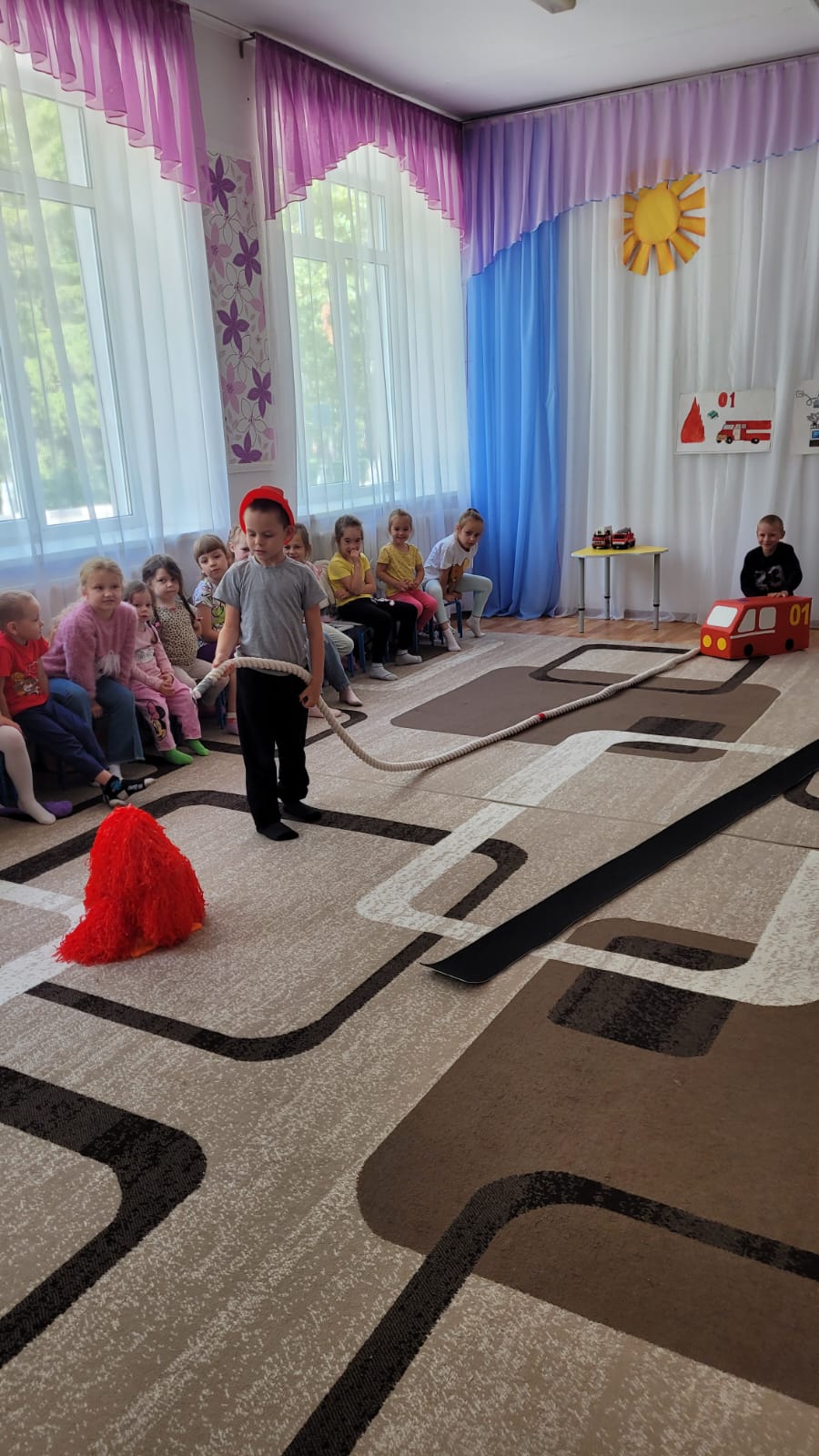 Мондый чара янгын сәбәпләре турында белем алырга һәм ашыгыч хәлләрдә эш итә белергә мөмкинлек бирде. Балалар бакчасында алган белемнәрне балалар белән «Күңелле янгын сүндерүче», «Учакны сүндер» уеннарында ныгыттылар.