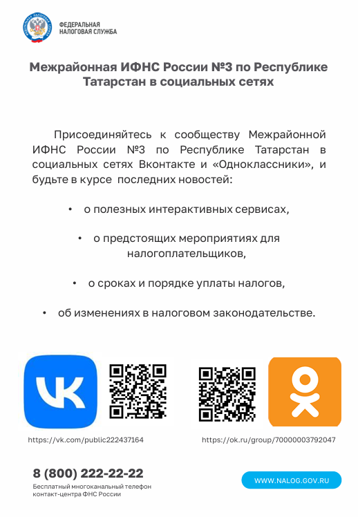 Россия Федерациясенең Татарстан Республикасы буенча 3 нче районара салым инспекциясе социаль челтәрләрдә