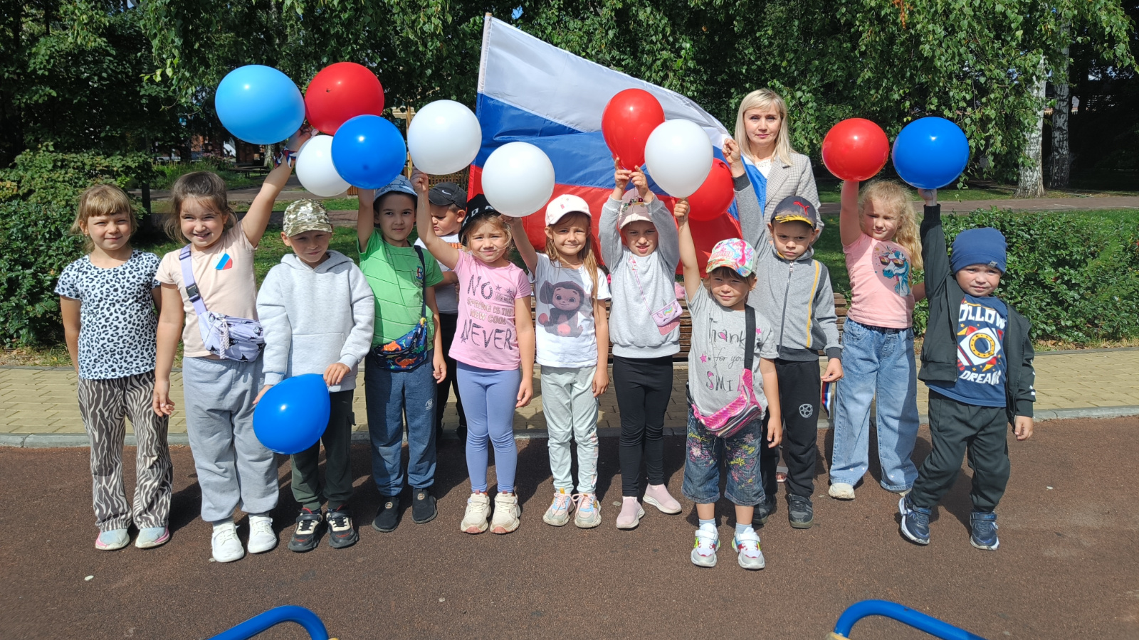 Россия Федерациясе Дәүләт флагы көнендә балалар китапханәсе хезмәткәрләре шәһәр паркында "Туган ил флагы Россия өстендә мәһабәт реет" тарихи экспрессын үткәрделәр, анда «Малыш» тәрбияләнүчеләре катнашты. Мәктәпкәчә яшьтәге балаларны Россия флагы тарихы белән таныштырдылар, триколор төсләренең нәрсә аңлатуы һәм Россия Федерациясе флагының нинди очракларда күтәрелүе турында сөйләделәр. Алган белемнәрен ныгыту өчен балалар «Россия горур триколоры» уенда катнаштылар, анда атрибутлар сыйфатында Россия флагы төсләрен кабатлаучы шарлар кулланылды, шулай ук викторина сорауларына җавап бирделәр. Балаларны Россия һәм дәүләт хакимиятенең төп символлары турындагы матур китаплар белән таныштырдылар.