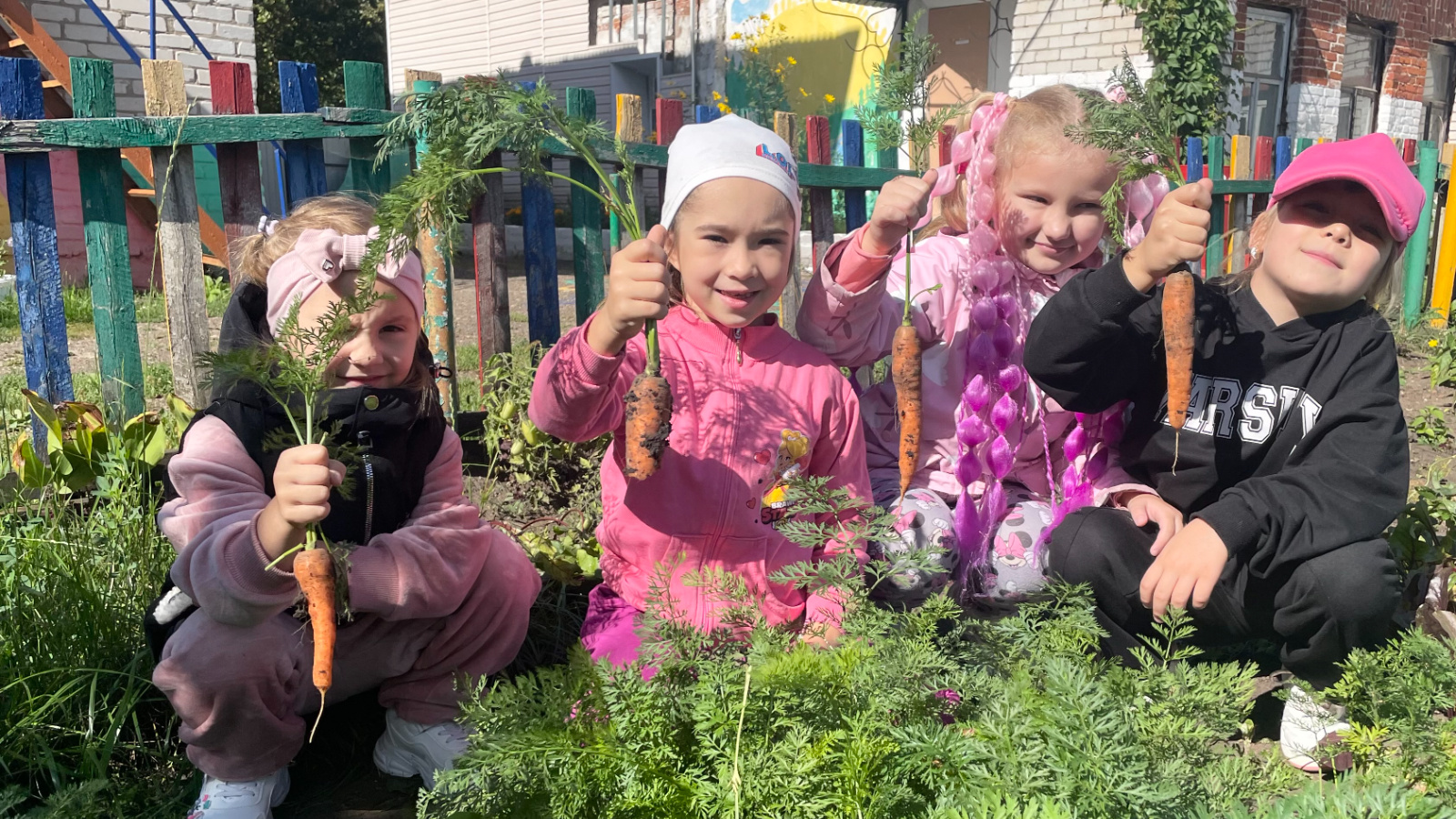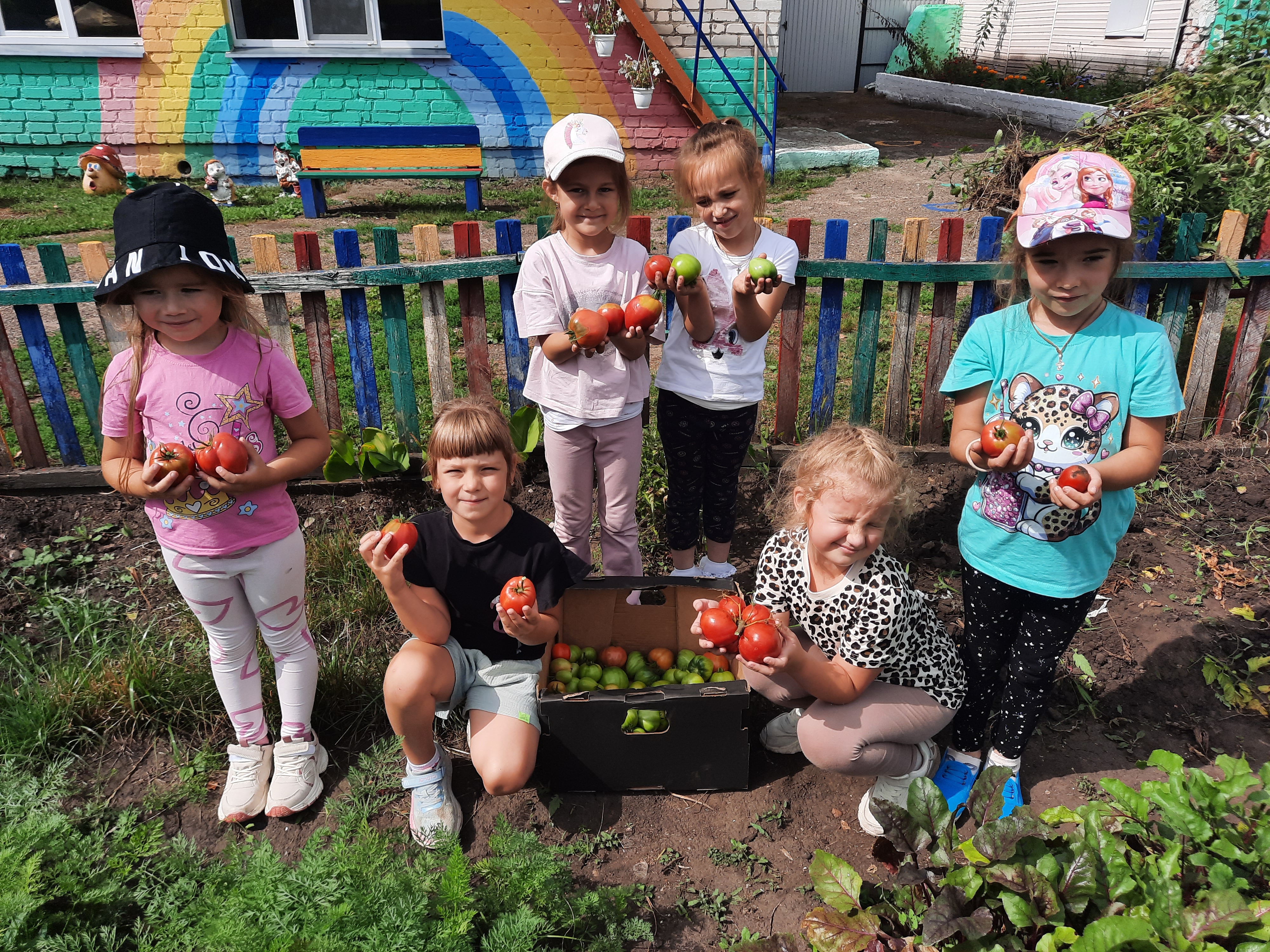 Тылсымчы көз җитте, агач яфракларын алтын белән коендырды, җиләк-җимеш һәм яшелчә мул уңыш бирә. “Сабый” балалар бакчасында тәрбияләнүчеләр зур шатлык белән үзләренең уңышын җыйдылар.