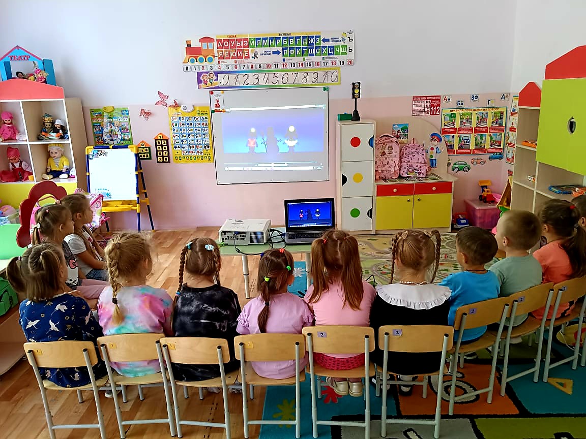 Материалны ныгыту өчен балалар куркынычсызлык кагыйдәләре һәм яктылык кайтаручыларның роле турында танып белү мультфильмын карадылар.