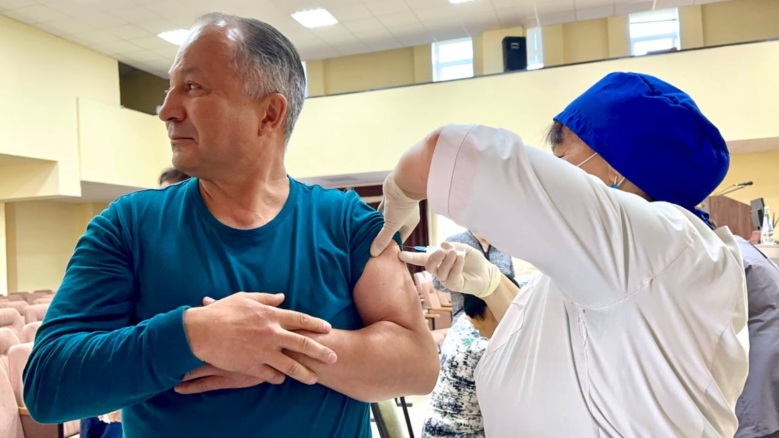 Район хакимияте хезмәткәрләре һәм учреждение җитәкчеләре гриппка каршы вакцина ясыйлар.