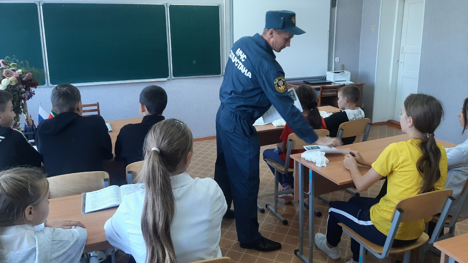 Куркынычсызлык айлыгы кысаларында безнең мәктәпкә Тәтеш муниципаль районының Олы Шәмәк авылы янгынга каршы хезмәтенең аерым посты начальнигы Васин Вадим Владимирович килде.