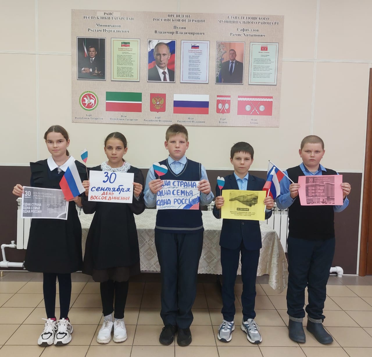 30 сентябрь көнне Тәтеш муниципаль районының мәдәни-ял итү учреждениеләрендә Донецк Халык Республикасының, Луганск Халык Республикасының , Запорожье өлкәсенең һәм Херсон өлкәсенең Россия Федерациясе белән берләшү көненә багышланган «Безнең уртак йортыбыз» патриотик акцияләре, «өйгә юл» батырлык дәресләре булып узды.